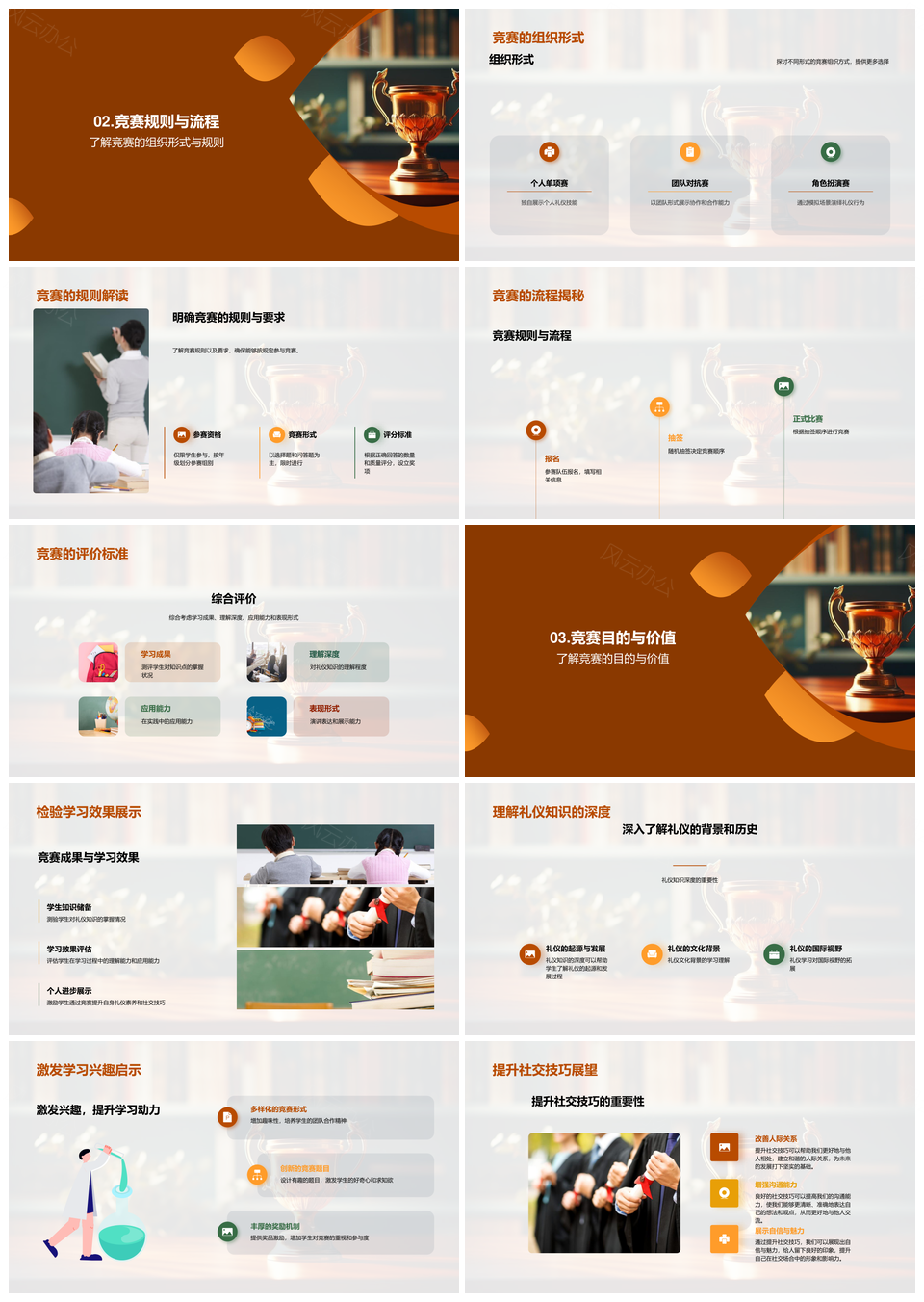 礼仪知识竞赛理论实践策略文化礼仪分类规则奖杯PPT模板推荐