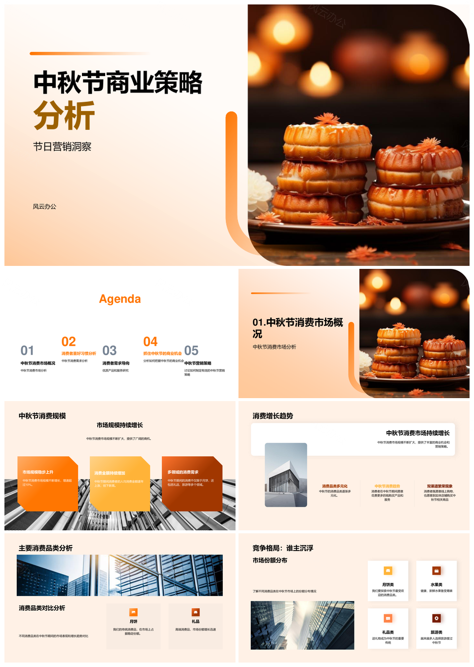 风云办公提供的中秋消费市场趋势与营销策略分析PPT模板,下载格式为pptx,一共33页,作品中文字及图均可以修改和编辑,图片更改请在作品中右键图片并更换,文字修改请直接点击文字进行修改。