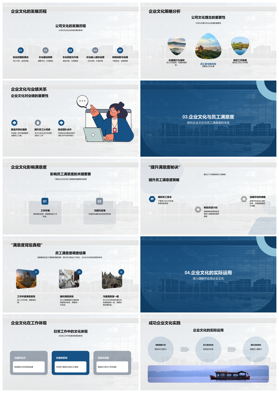 风云办公提供的企业文化战略实践驱动业绩员工满意PPT模板,下载格式为pptx,一共23页,作品中文字及图均可以修改和编辑,图片更改请在作品中右键图片并更换,文字修改请直接点击文字进行修改。
