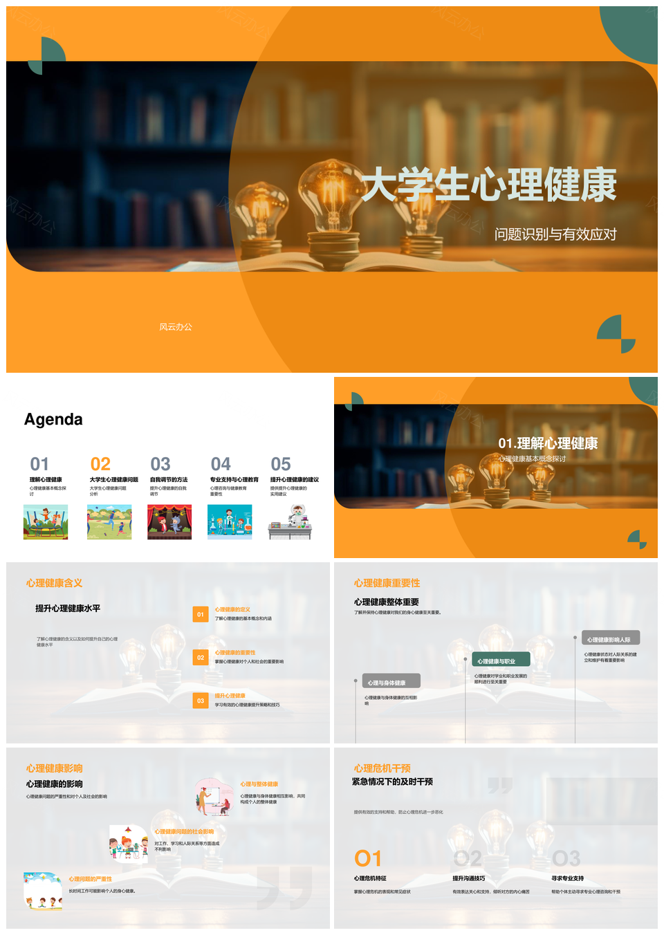 这是一张大学生心理健康问题识别应对与危机干预PPT模板,包含大学生、心理健康问题、识别、应对、危机干预等主题内容,也可用作大学生心理健康问题识别应对、大学生心理健康问题识别、心理健康问题识别应对、问题识别应对危机干预、大学生心理健康问题、心理健康问题识别、问题识别应对、识别应对危机干预、大学生心理健康、心理健康问题、问题识别、识别应对、应对危机干预、大学生危机干预、心理健康危机干预等PPT场景使用。 风云办公提供的大学生心理健康问题识别应对与危机干预PPT模板,下载格式为pptx,一共33页,作品中文字及图均可以修改和编辑,图片更改请在作品中右键图片并更换,文字修改请直接点击文字进行修改。