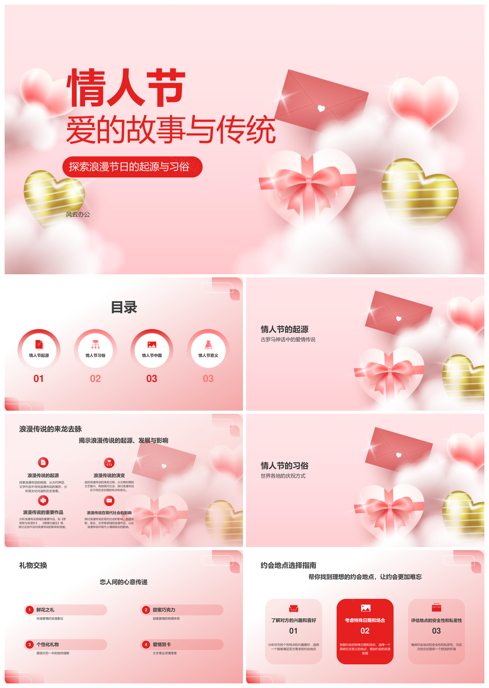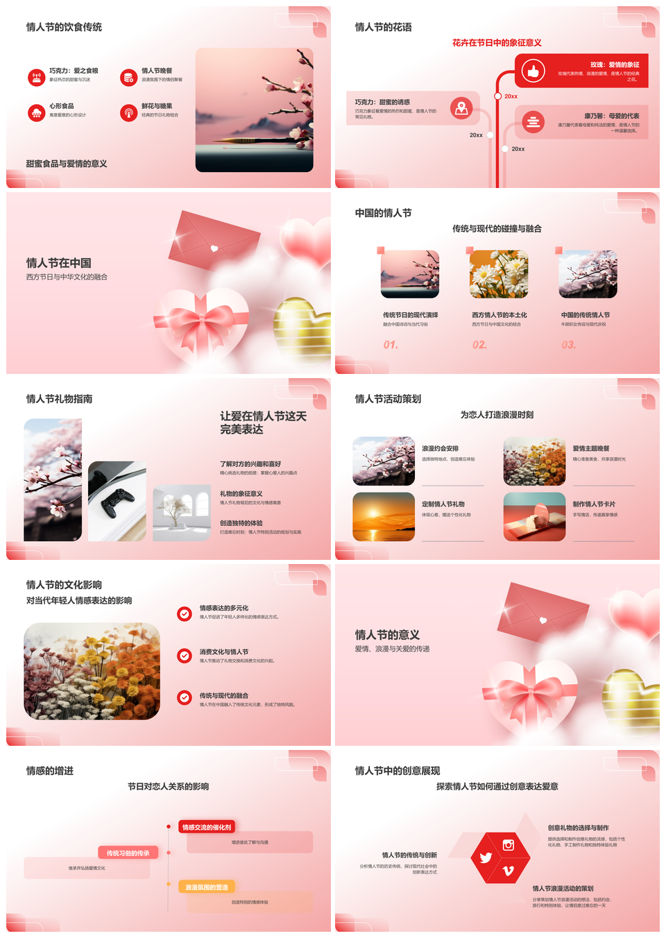 红色七夕情人节婚礼相册告白表白浪漫爱情PPT模板