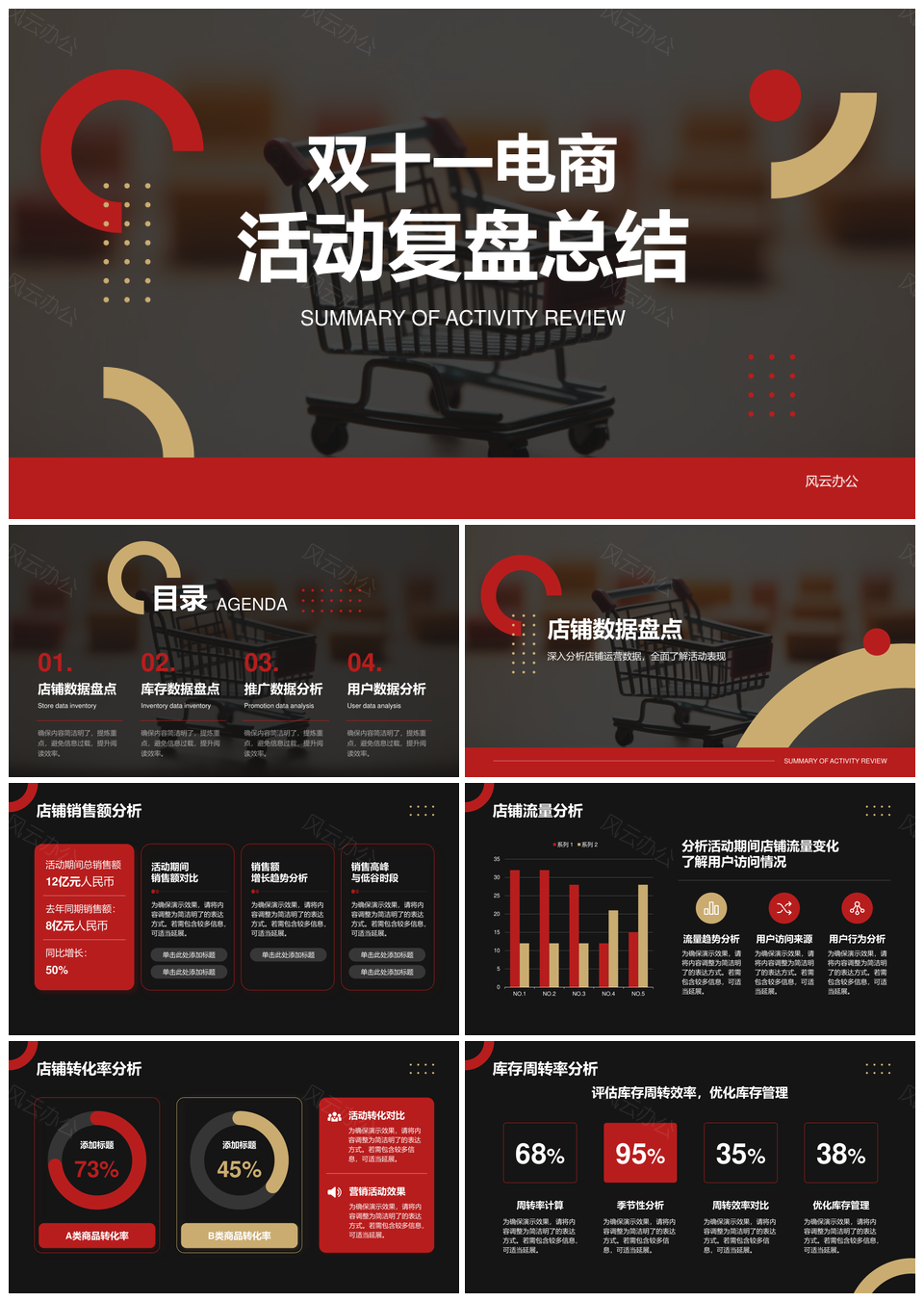 风云办公提供的2025电商活动复盘多维数据分析PPT模板,下载格式为pptx,一共14页,作品中文字及图均可以修改和编辑,图片更改请在作品中右键图片并更换,文字修改请直接点击文字进行修改。