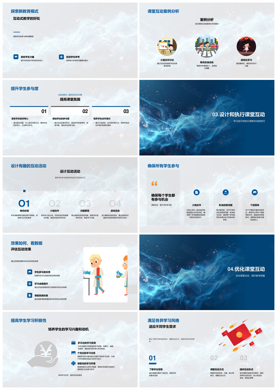这是一张四年级互动教学法提升参与理解促认知发展PPT模板,包含四年级、互动教学法、提升、参与、理解、促、认知发展等主题内容,也可用作四年级互动教学法提升参与、互动教学法提升参与理解、四年级互动教学法提升、教学法提升参与理解、提升参与理解认知、参与理解认知发展、互动教学法促进参与、教学法促进理解认知、互动教学提升认知发展、四年级互动教学法、互动教学法提升、提升参与理解、参与理解认知、理解认知发展、四年级提升参与等PPT场景使用。 风云办公提供的四年级互动教学法提升参与理解促认知发展PPT模板,下载格式为pptx,一共23页,作品中文字及图均可以修改和编辑,图片更改请在作品中右键图片并更换,文字修改请直接点击文字进行修改。