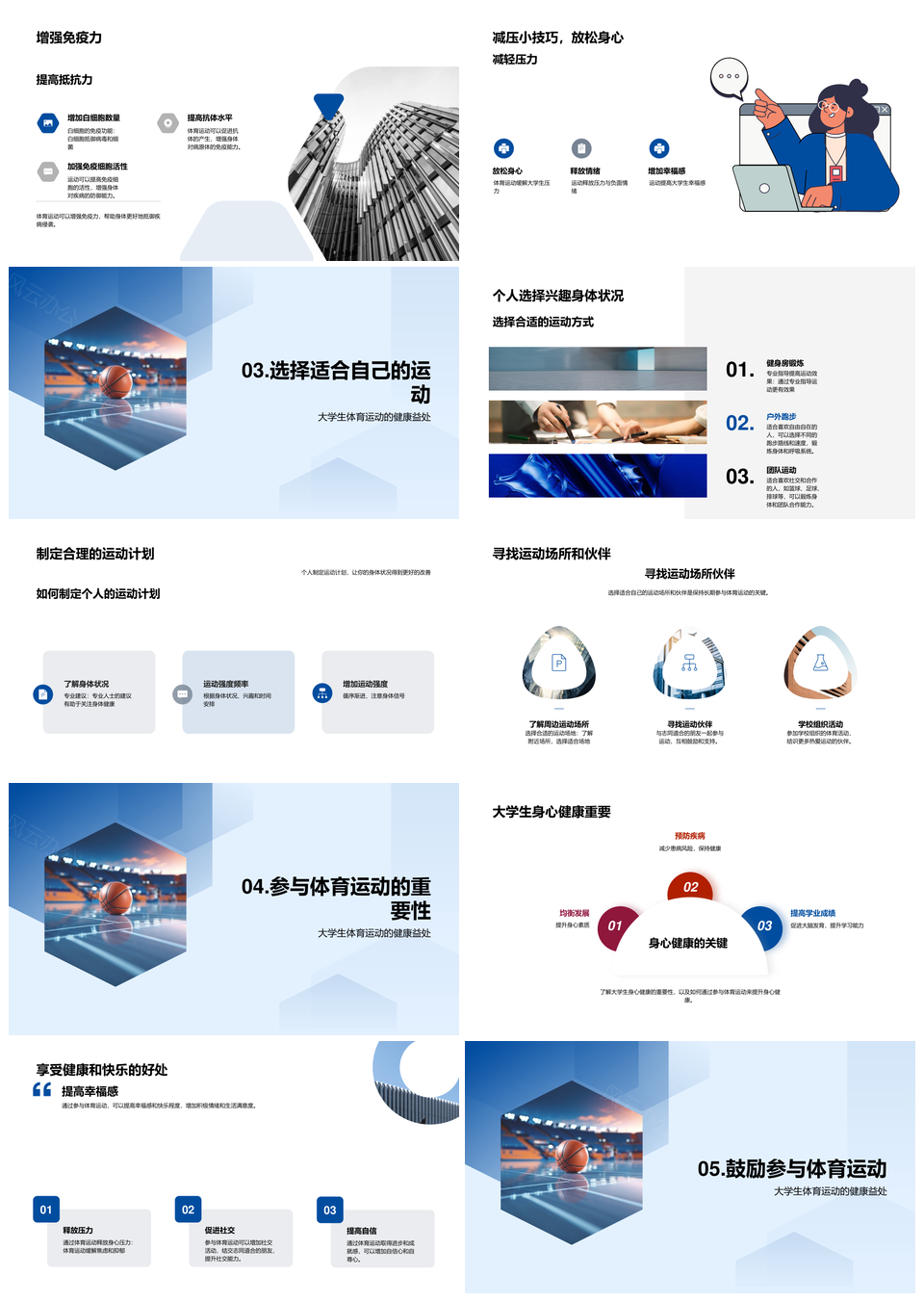 风云办公提供的大学生运动强心肺增免疫促健康教育PPT模板,下载格式为pptx,一共21页,作品中文字及图均可以修改和编辑,图片更改请在作品中右键图片并更换,文字修改请直接点击文字进行修改。