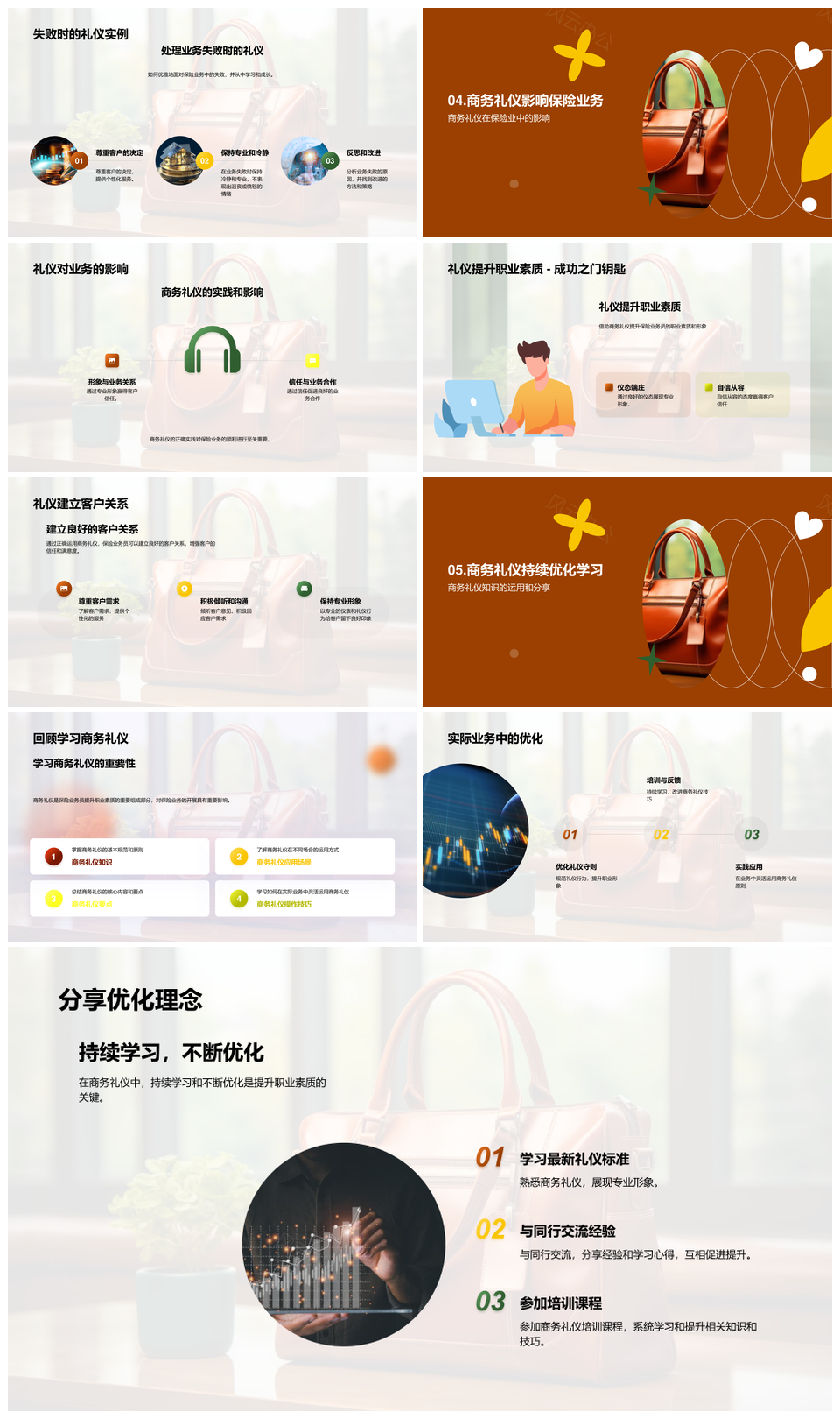 这是一张保险商务礼仪培训提升业务经理职业素质PPT模板,包含保险、商务礼仪、培训、提升、业务经理、职业素质等主题内容,也可用作保险商务礼仪培训提升业务经理职业素质、商务礼仪培训提升业务经理、保险商务礼仪培训提升、礼仪培训提升业务经理、培训提升业务经理职业、提升业务经理职业素质、保险商务礼仪培训、商务礼仪培训提升、礼仪培训提升业务、培训提升职业素质、保险商务礼仪、商务礼仪培训、业务经理职业素质、提升职业素质、职业素质提升等PPT场景使用。 风云办公提供的保险商务礼仪培训提升业务经理职业素质PPT模板,下载格式为pptx,一共27页,作品中文字及图均可以修改和编辑,图片更改请在作品中右键图片并更换,文字修改请直接点击文字进行修改。
