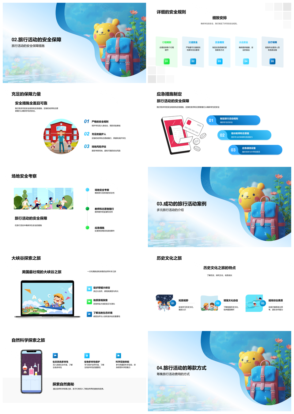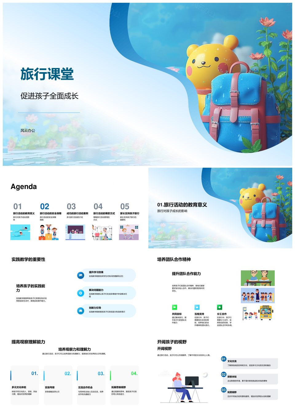 这是一张旅行课堂实践成长团队协作拓视野保安全PPT模板,包含旅行课堂、实践、成长、团队、协作、拓视野、保安全等主题内容,也可用作旅行课堂实践成长、团队协作拓视野保安全、课堂实践团队协作、旅行团队协作保安全、实践成长团队协作、成长团队协作拓视野、团队协作拓视野保安全、课堂实践成长团队、实践团队协作拓视野、旅行课堂团队协作、课堂拓视野保安全、团队协作保安全、协作拓视野保安全、课堂实践成长、实践成长团队等PPT场景使用。 风云办公提供的旅行课堂实践成长团队协作拓视野保安全PPT模板,下载格式为pptx,一共27页,作品中文字及图均可以修改和编辑,图片更改请在作品中右键图片并更换,文字修改请直接点击文字进行修改。