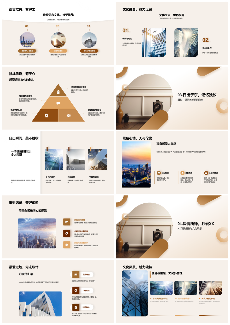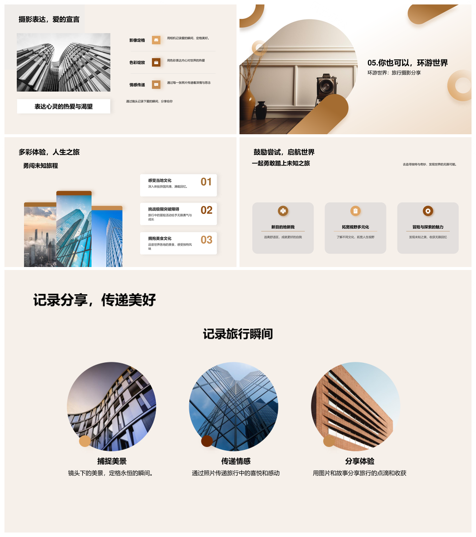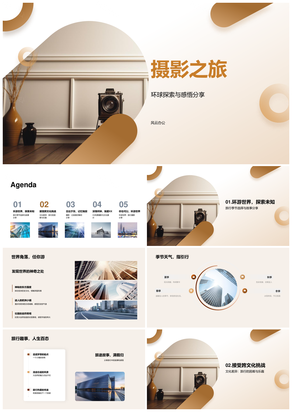 风云办公提供的环球摄影探索文化季节气候相机相册PPT模板,下载格式为pptx,一共23页,作品中文字及图均可以修改和编辑,图片更改请在作品中右键图片并更换,文字修改请直接点击文字进行修改。