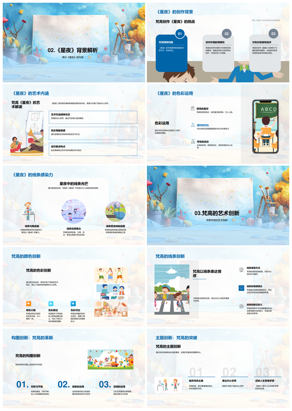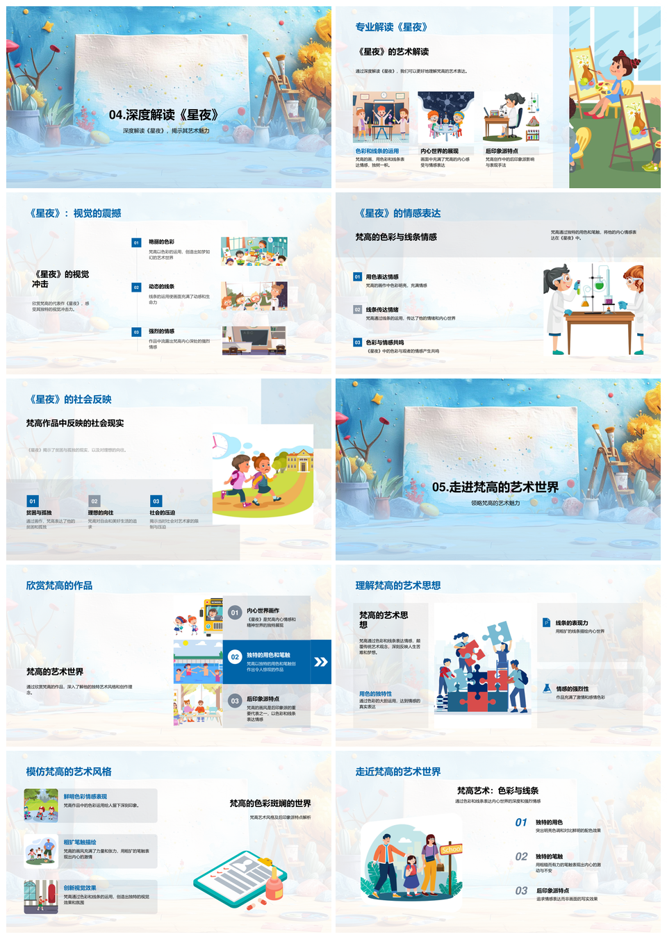 2025梵高星夜后印象派用色笔触艺术解析PPT模板推荐