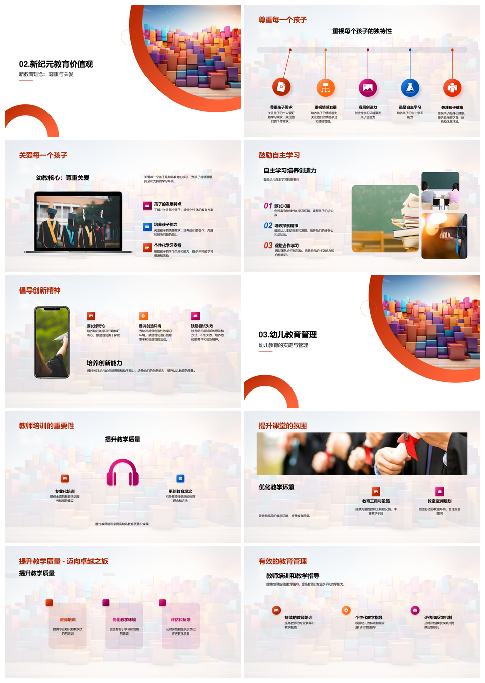 这是一张教育新纪元幼儿启蒙教师培训创新环境积木PPT模板,包含教育、新纪元、幼儿、启蒙、教师、培训、创新、环境、积木等主题内容,也可用作教育新纪元幼儿启蒙、新纪元幼儿启蒙教师、幼儿启蒙教师培训、启蒙教师培训创新、教师培训创新环境、培训创新环境积木、教育新纪元幼儿教师、教育幼儿启蒙教师培训、新纪元幼儿教师培训、幼儿启蒙培训创新环境、教师培训环境积木、教育启蒙教师创新、新纪元培训创新积木、教育教师环境积木、幼儿创新环境积木等PPT场景使用。 风云办公提供的教育新纪元幼儿启蒙教师培训创新环境积木PPT模板,下载格式为pptx,一共28页,作品中文字及图均可以修改和编辑,图片更改请在作品中右键图片并更换,文字修改请直接点击文字进行修改。