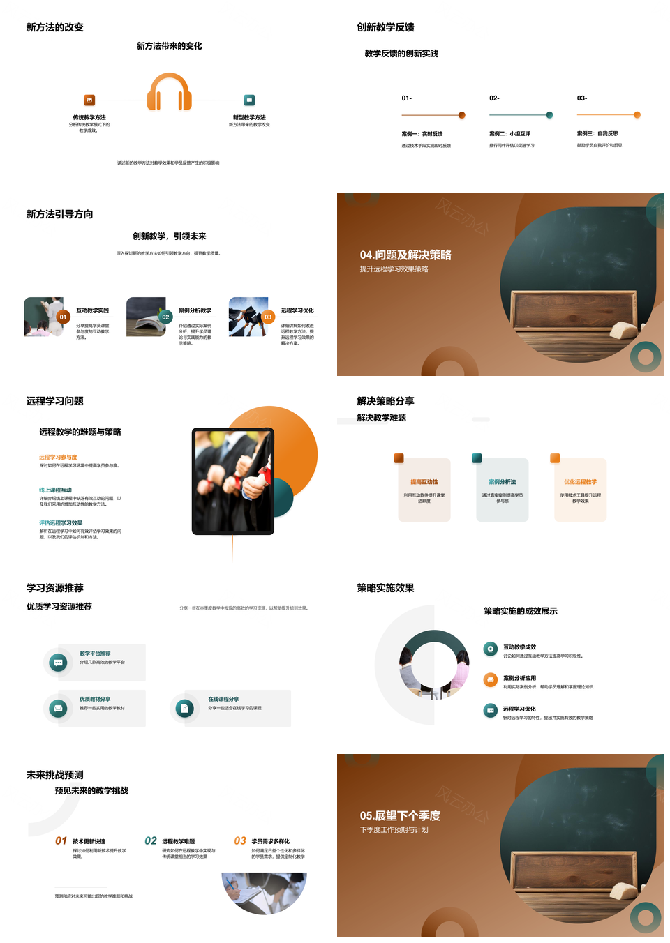 培训教学季度总结亮点挑战互动案例展望PPT模板推荐
