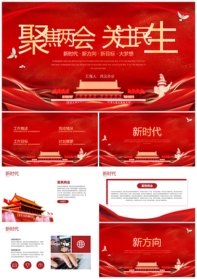 红色聚焦两会党政机关工作总结汇报PPT模板
