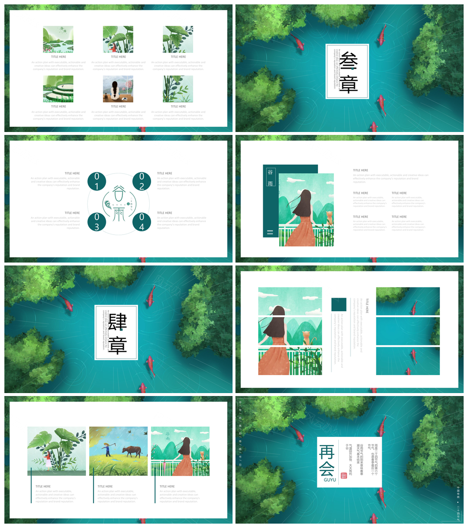这是一张绿色中国风谷雨传统民族文化二十四节气PPT模板,包含绿色、中国风、谷雨、传统、民族文化、二十四节气等主题内容,也可用作绿色中国风谷雨传统民族文化二十四节气、绿色中国风传统民族文化、谷雨传统民族文化二十四节气、绿色中国风二十四节气、谷雨传统民族文化、绿色中国风传统、民族文化二十四节气、绿色谷雨传统、中国风谷雨、传统二十四节气等PPT场景使用。 风云办公提供的绿色中国风谷雨传统民族文化二十四节气PPT模板,下载格式为pptx,一共15页,作品中文字及图均可以修改和编辑,图片更改请在作品中右键图片并更换,文字修改请直接点击文字进行修改。