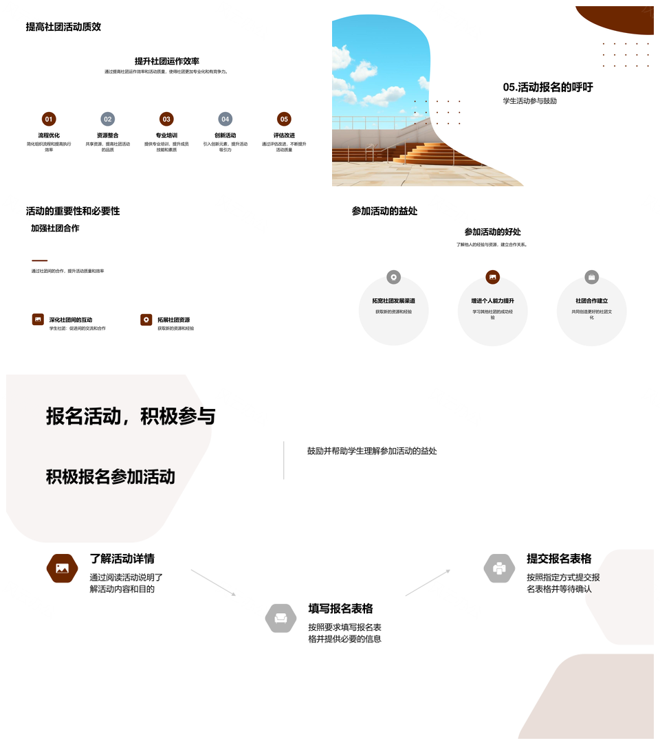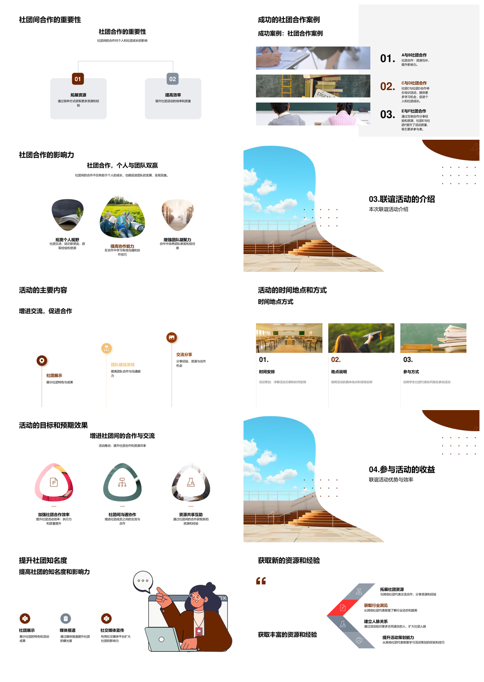 风云办公提供的大学社团联谊合作创价值促发展PPT模板,下载格式为pptx,一共23页,作品中文字及图均可以修改和编辑,图片更改请在作品中右键图片并更换,文字修改请直接点击文字进行修改。