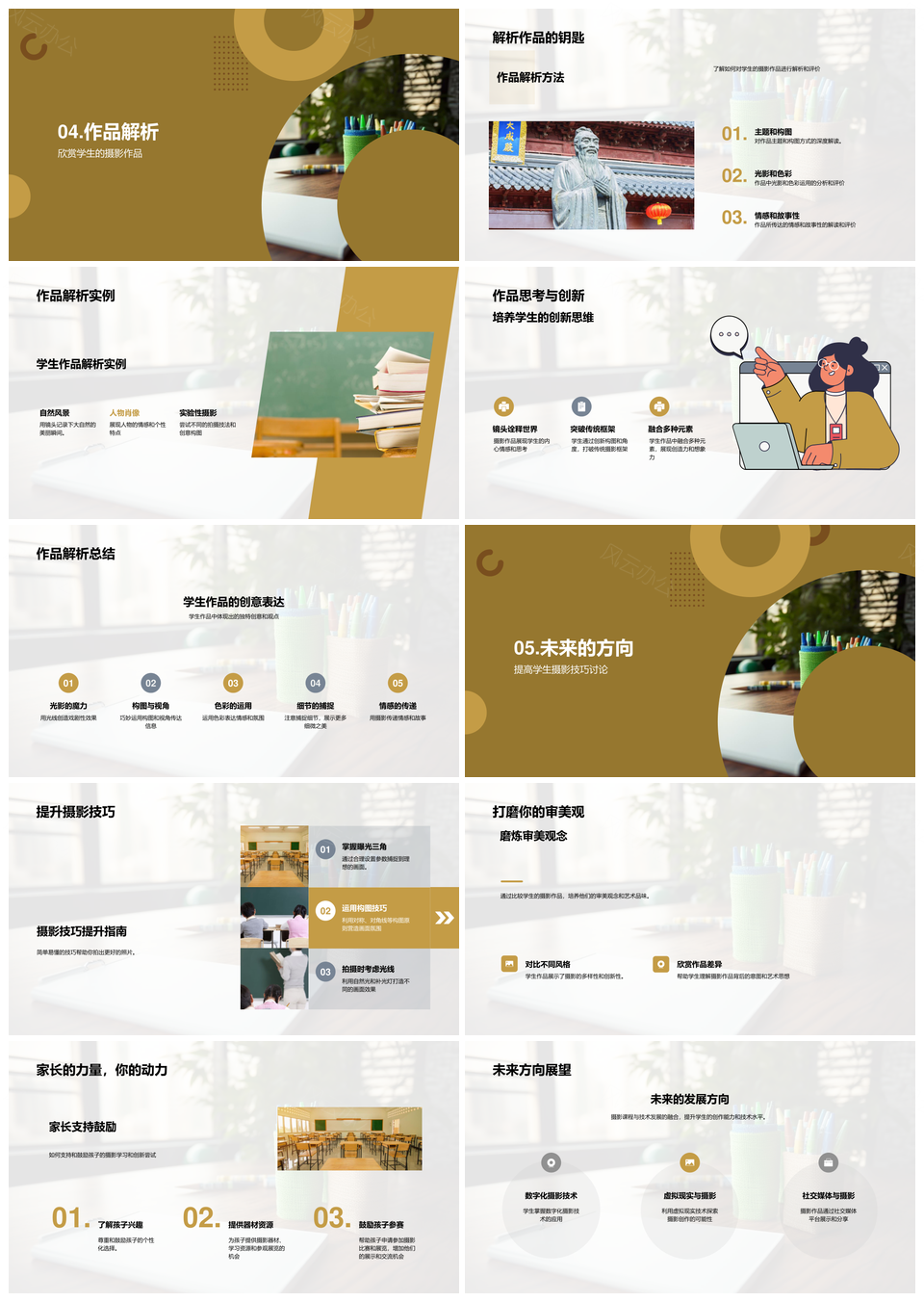 这是一张学生摄影技能提升与作品创造力解析PPT模板,包含学生、摄影技能、提升、作品、创造力、解析等主题内容,也可用作学生摄影技能提升、学生摄影技能、学生技能提升、摄影技能提升、技能提升作品、技能提升作品创造力、作品创造力解析、提升作品创造力、提升作品创造力解析、摄影技能作品、摄影技能作品创造力、学生作品创造力、学生摄影作品、技能创造力解析、摄影作品创造力等PPT场景使用。