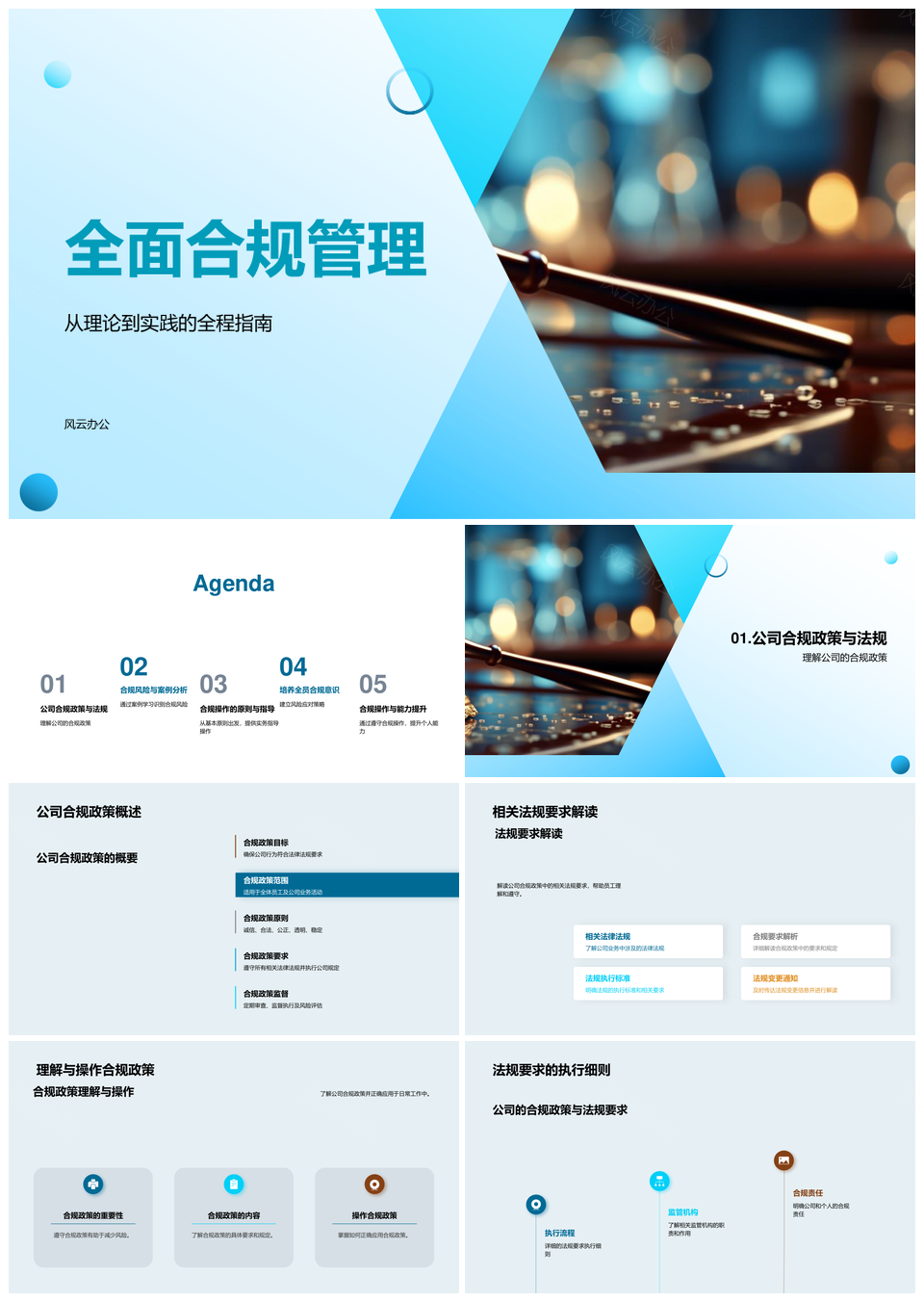 风云办公提供的全面合规管理法规风险防控案例解析PPT模板,下载格式为pptx,一共29页,作品中文字及图均可以修改和编辑,图片更改请在作品中右键图片并更换,文字修改请直接点击文字进行修改。