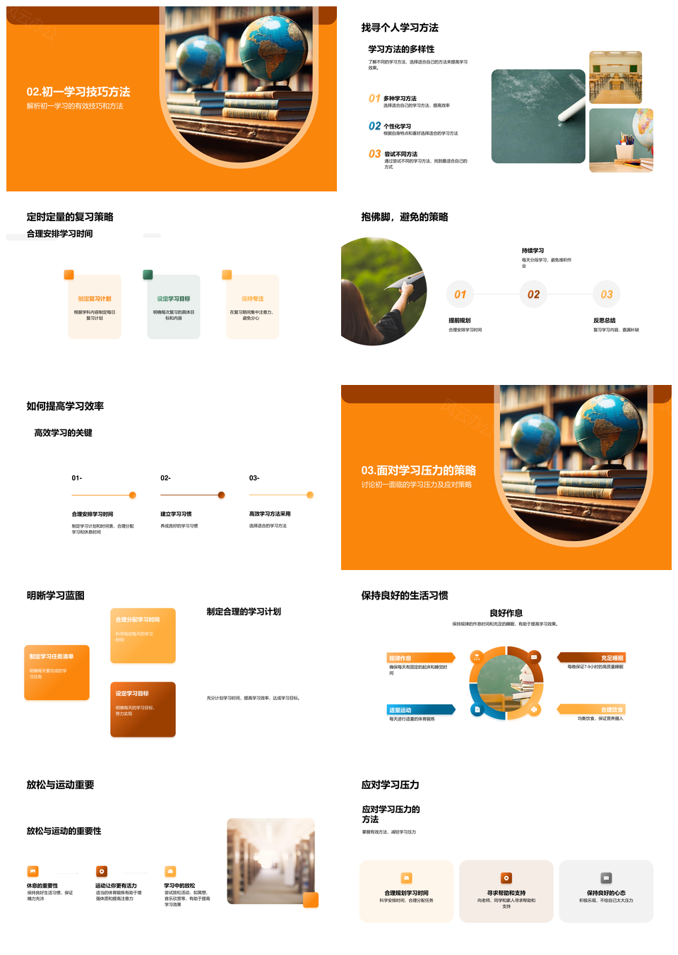 风云办公提供的初一多彩学科学习攻略高效计划PPT模板,下载格式为pptx,一共28页,作品中文字及图均可以修改和编辑,图片更改请在作品中右键图片并更换,文字修改请直接点击文字进行修改。