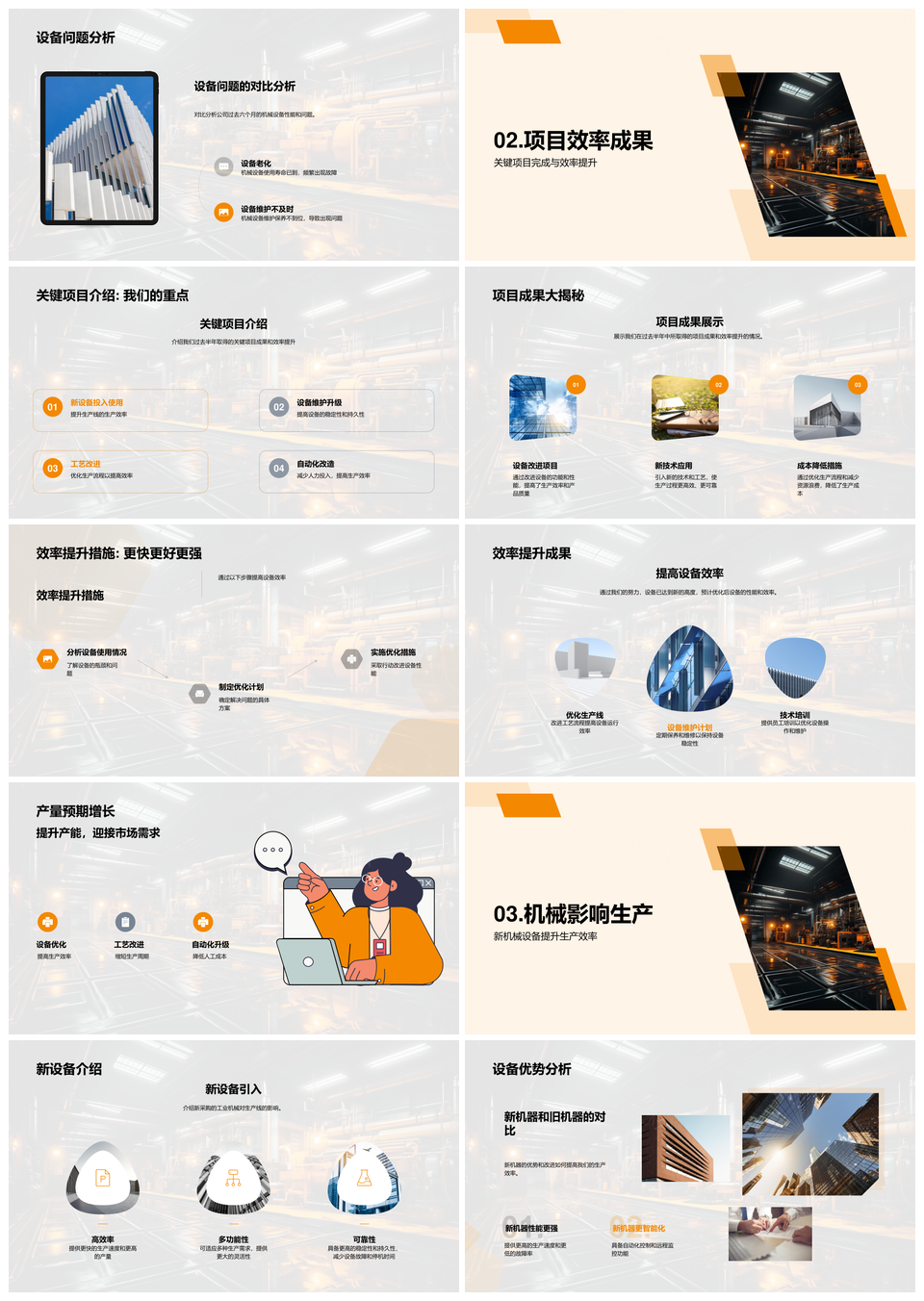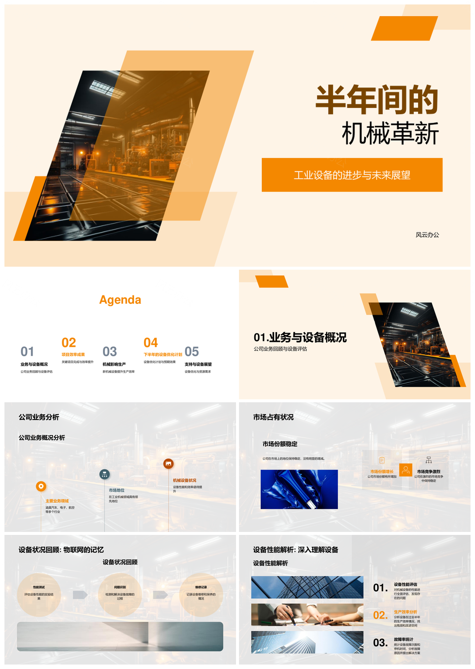 风云办公提供的机械革新推动工业设备效率产量双升PPT模板,下载格式为pptx,一共33页,作品中文字及图均可以修改和编辑,图片更改请在作品中右键图片并更换,文字修改请直接点击文字进行修改。