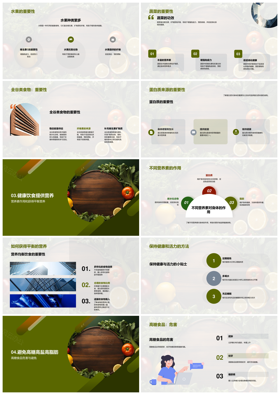 健康饮食计划营养均衡蔬果肉类活力人生PPT模板