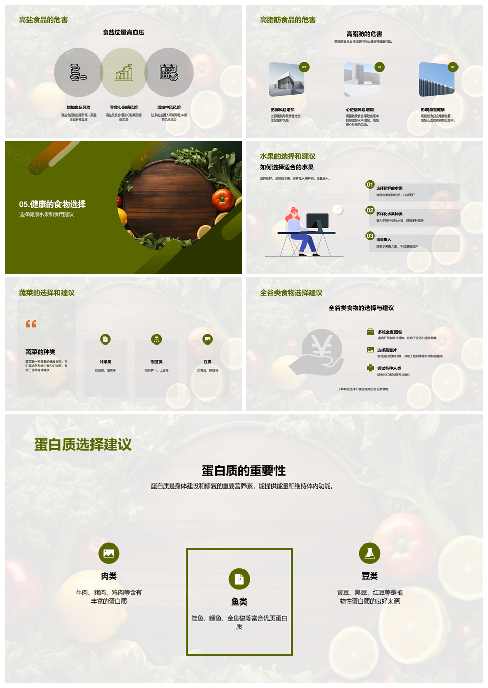 职场健康饮食营养指南选食蛋白质碳水脂肪PPT模板