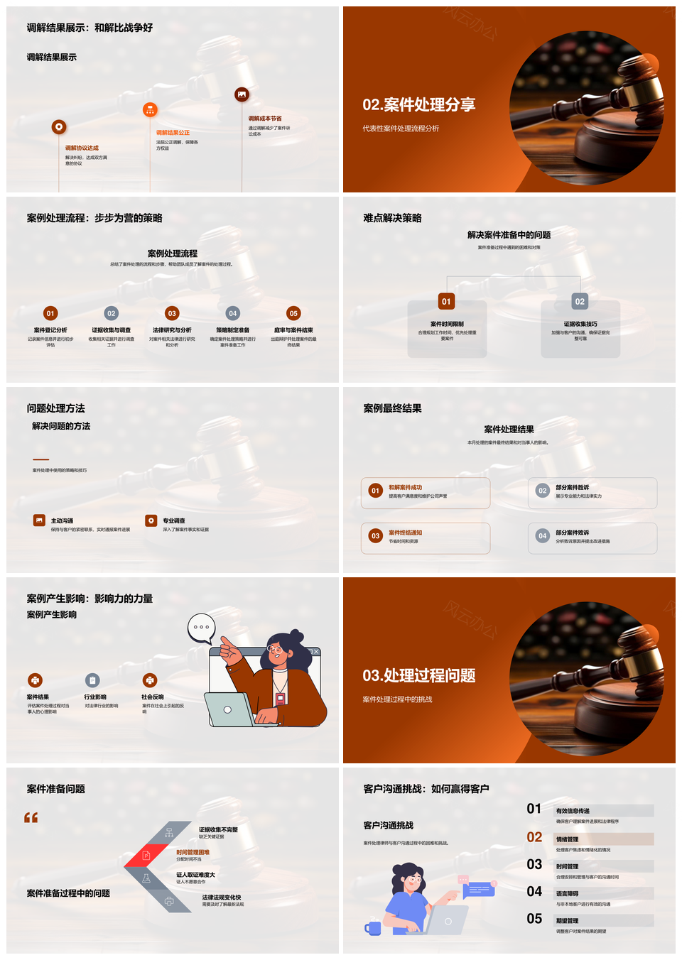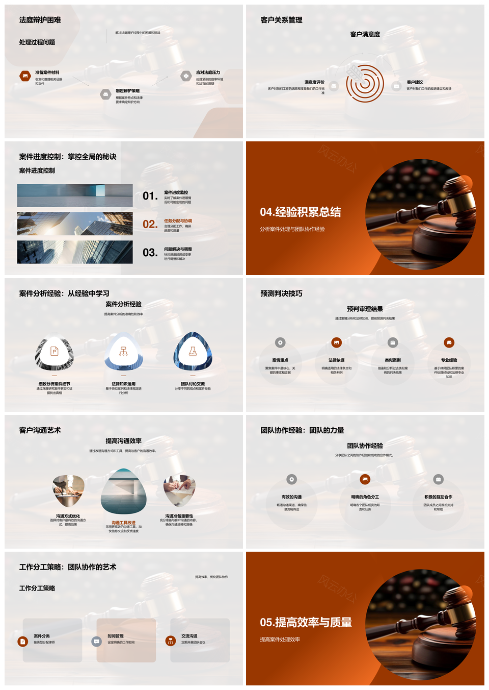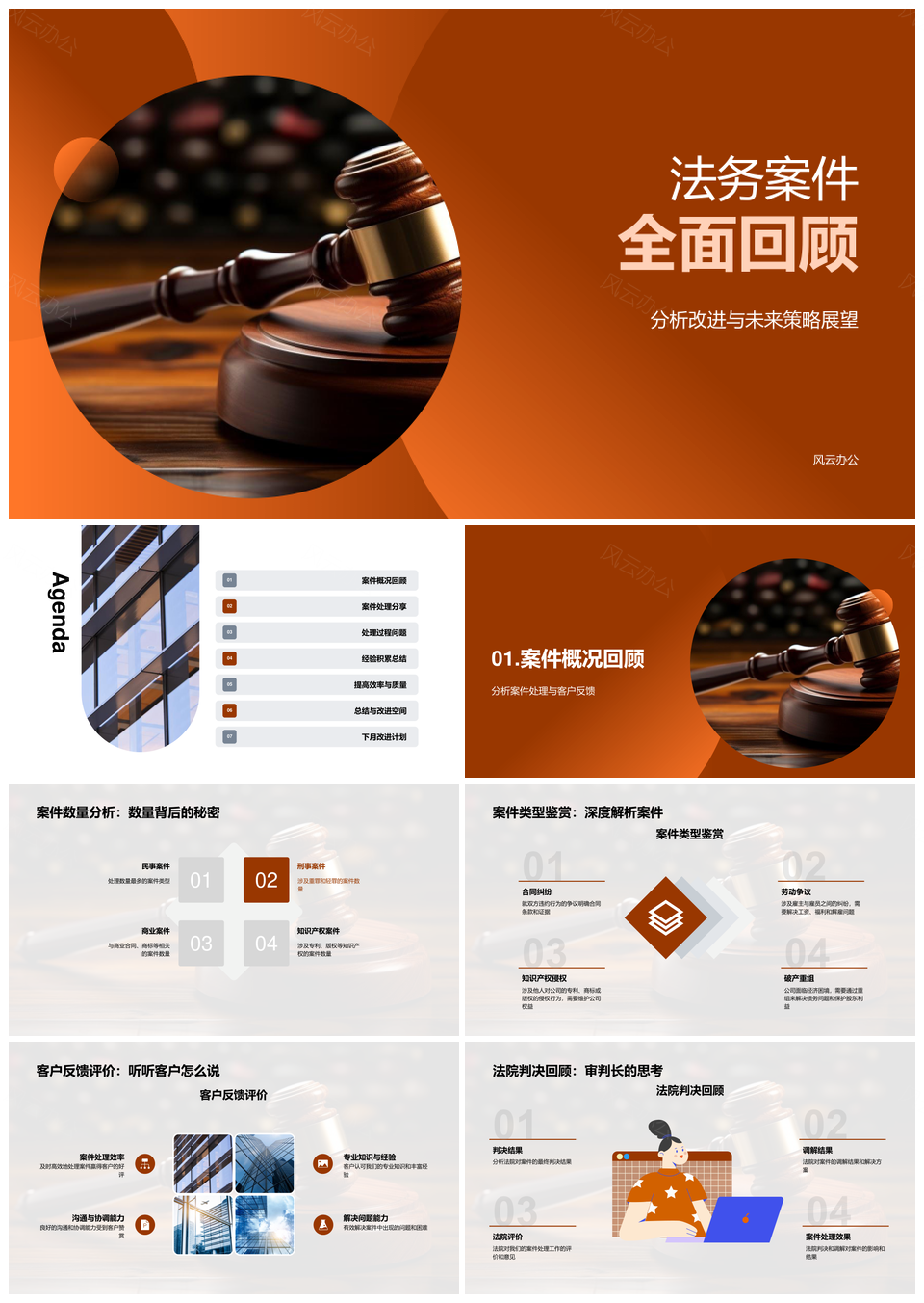 法务案件律师团队协作处理流程客户反馈全面回顾PPT模板推荐
