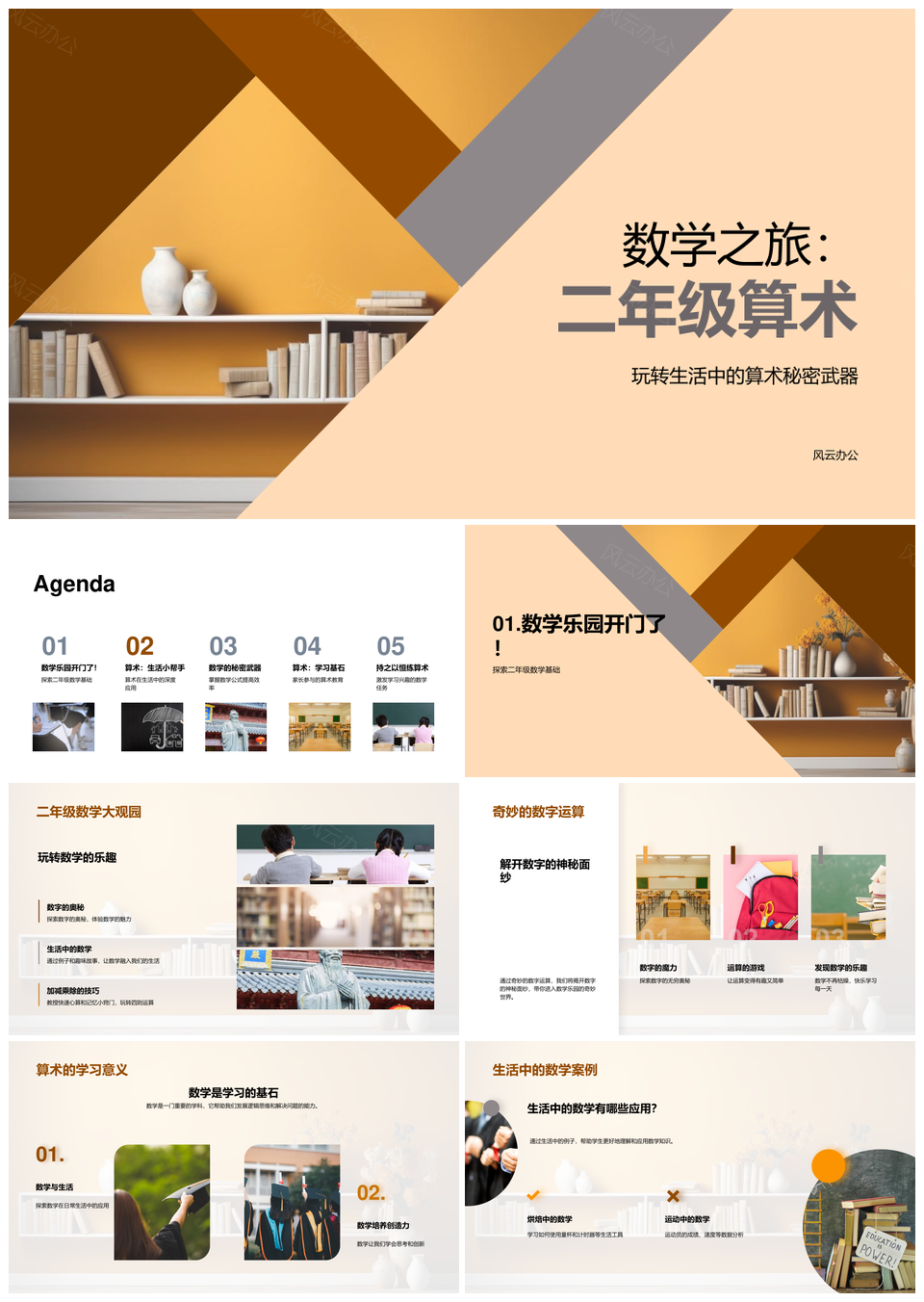 2025二年级数学运算形状测量生活教育思维游戏报告PPT模板