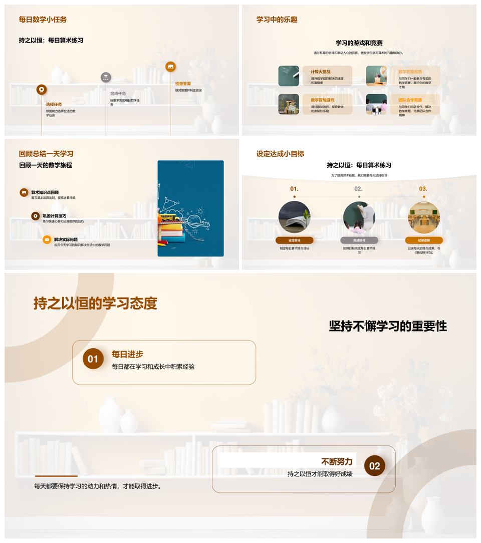 本模板以明黄色与棕色为主调,明亮色调助力知识传达,封面采用几何线条展现算术逻辑。内容页通过模块化设计区分教育理论、数理公式与生活案例,波粒二象性等抽象概念由动态图示清晰拆解,激光应用实例配备数据化图表。双色背景确保文字可视性,分级标题引导内容逻辑,适宜科研汇报、物理课件、数学教育等场景。理科教师可用渐变色块强化公式推导,大学生可借助时间轴演示学习成果,专业性与实用性平衡。