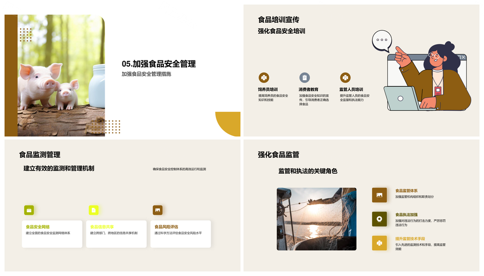 这是一张猪肉食品安全风险防控与抗生素检测监测PPT模板,包含猪肉食品、安全风险、防控、抗生素、检测、监测等主题内容,也可用作猪肉食品安全风险防控抗生素检测、食品安全风险防控抗生素检测监测、猪肉食品安全风险防控、食品安全风险防控抗生素检测、风险防控抗生素检测监测、猪肉食品安全抗生素检测、食品安全抗生素检测监测、猪肉食品安全、食品安全风险防控、风险防控抗生素检测、抗生素检测监测、猪肉抗生素检测、食品安全抗生素检测、食品安全监测、风险防控监测等PPT场景使用。 风云办公提供的猪肉食品安全风险防控与抗生素检测监测PPT模板,下载格式为pptx,一共22页,作品中文字及图均可以修改和编辑,图片更改请在作品中右键图片并更换,文字修改请直接点击文字进行修改。