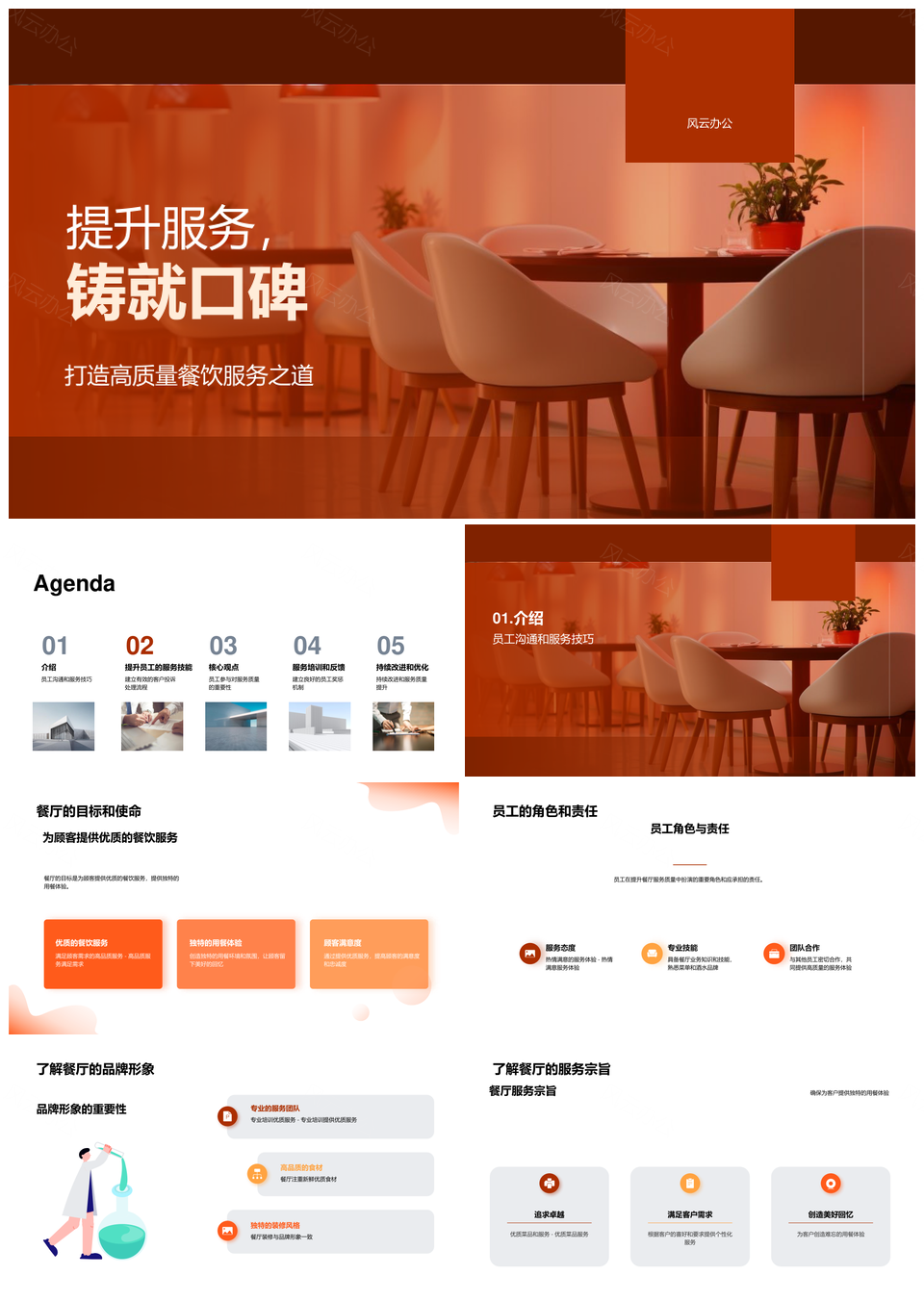 风云办公提供的餐厅经理沟通优化服务铸就品牌口碑PPT模板,下载格式为pptx,一共28页,作品中文字及图均可以修改和编辑,图片更改请在作品中右键图片并更换,文字修改请直接点击文字进行修改。