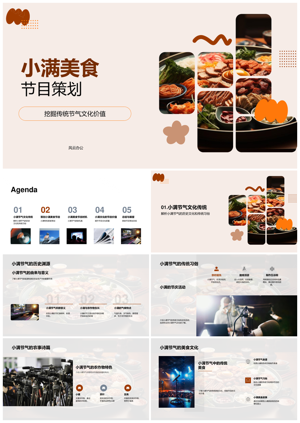 风云办公提供的小满节气美食文化访谈创新节目策划PPT模板,下载格式为pptx,一共33页,作品中文字及图均可以修改和编辑,图片更改请在作品中右键图片并更换,文字修改请直接点击文字进行修改。