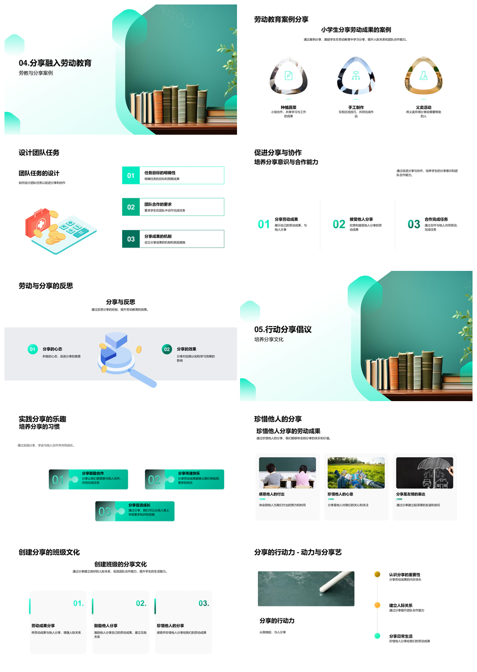 这是一张劳动协作分享成果快乐成长PPT模板,包含劳动、协作、分享、成果、快乐、成长等主题内容,也可用作劳动协作分享成果、协作分享成果快乐、分享成果快乐成长、劳动协作分享、协作分享成果、分享成果快乐、成果快乐成长、劳动协作、协作分享、分享成果、劳动成果、快乐成长、协作成果、分享快乐、协作快乐等PPT场景使用。 风云办公提供的劳动协作分享成果快乐成长PPT模板,下载格式为pptx,一共28页,作品中文字及图均可以修改和编辑,图片更改请在作品中右键图片并更换,文字修改请直接点击文字进行修改。