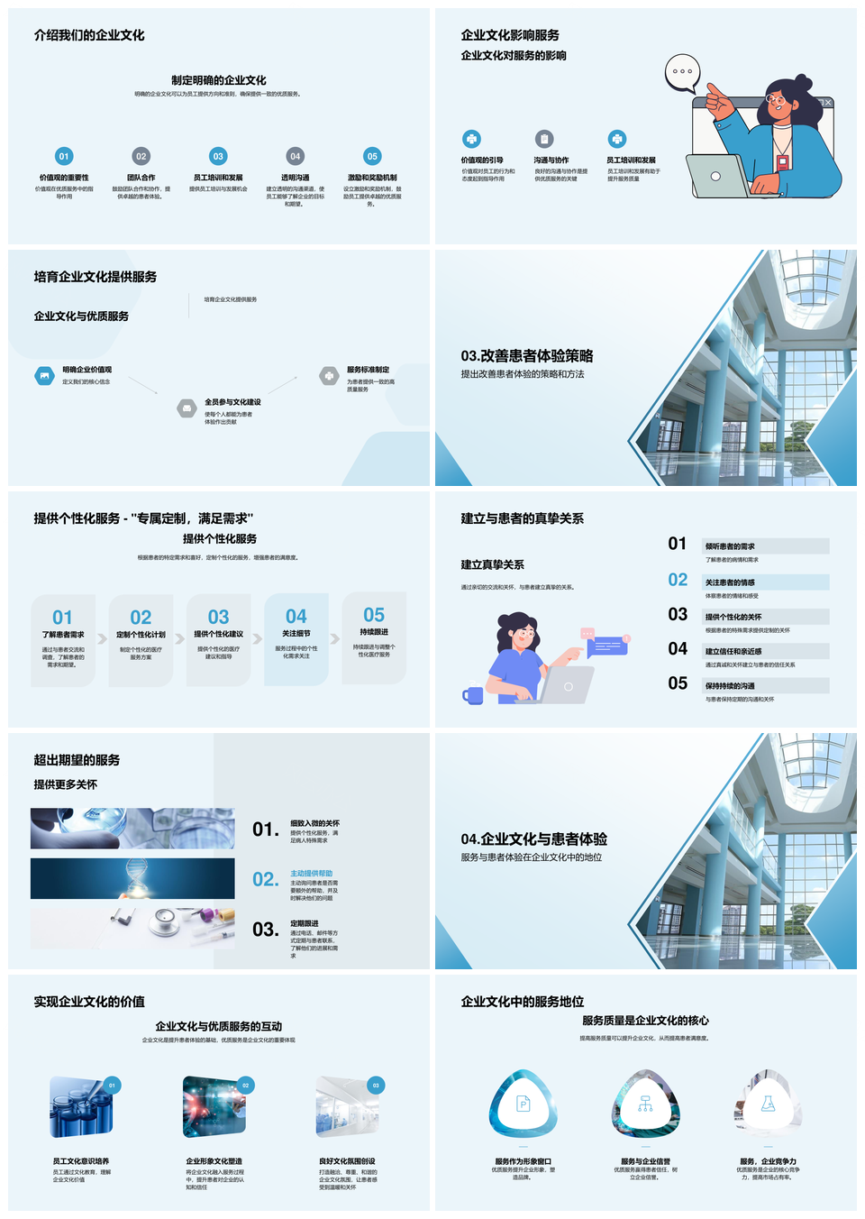 这是一张生物医疗优质服务提升患者体验PPT模板,包含生物医疗、优质服务、提升、患者体验等主题内容,也可用作生物医疗优质服务、生物医疗优质服务提升患者体验、医疗优质服务、医疗优质服务提升、优质服务提升、优质服务提升患者体验、服务提升患者体验、生物医疗、优质服务、服务提升、患者体验等PPT场景使用。 风云办公提供的生物医疗优质服务提升患者体验PPT模板,下载格式为pptx,一共23页,作品中文字及图均可以修改和编辑,图片更改请在作品中右键图片并更换,文字修改请直接点击文字进行修改。