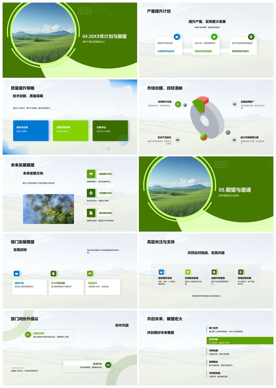 这是一张2025农林牧渔绿色技术创新振兴产销动态PPT模板,包含农林牧渔、绿色技术、创新、振兴、产销等主题内容,也可用作2025农林牧渔绿色技术创新、农林牧渔绿色技术创新振兴、绿色技术创新振兴产销、创新振兴产销动态、2025农林牧渔绿色技术、农林牧渔绿色技术创新、绿色技术创新振兴、创新振兴产销、振兴产销动态、2025农林牧渔、农林牧渔绿色技术、绿色技术创新、创新振兴、振兴产销、产销动态等PPT场景使用。 风云办公提供的2025农林牧渔绿色技术创新振兴产销动态PPT模板,下载格式为pptx,一共28页,作品中文字及图均可以修改和编辑,图片更改请在作品中右键图片并更换,文字修改请直接点击文字进行修改。