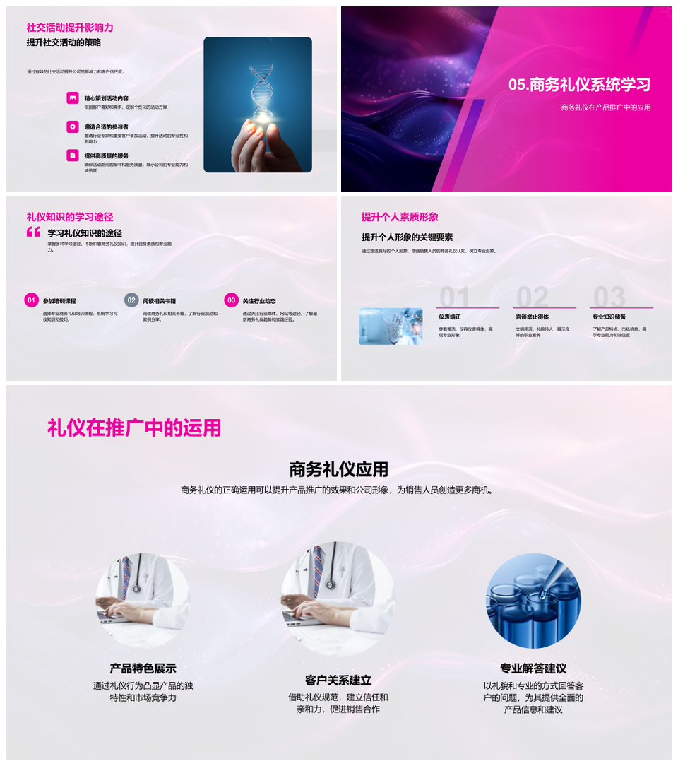 这是一张医保销售商务礼仪应用培训PPT模板,包含医保、销售、商务礼仪、应用、培训等主题内容,也可用作医保销售商务礼仪、销售商务礼仪应用、商务礼仪应用培训、医保销售商务、销售商务礼仪、商务礼仪应用、礼仪应用培训、医保销售、销售商务、商务礼仪、礼仪应用、应用培训、医保培训、销售培训、商务应用等PPT场景使用。 风云办公提供的医保销售商务礼仪应用培训PPT模板,下载格式为pptx,一共23页,作品中文字及图均可以修改和编辑,图片更改请在作品中右键图片并更换,文字修改请直接点击文字进行修改。