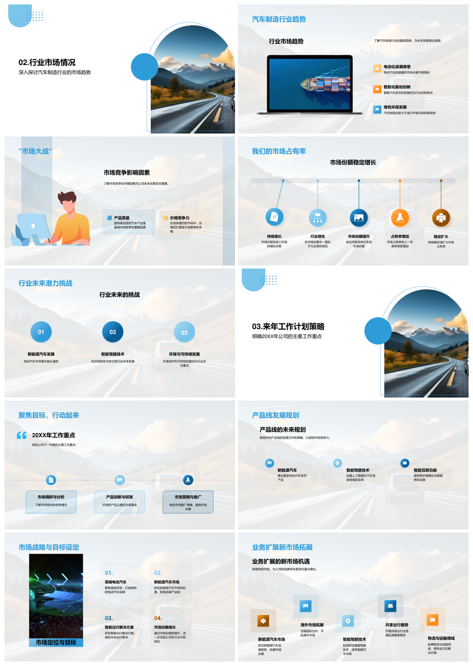 这是一张2025汽车制造业年度成绩与前瞻规划策略PPT模板,包含2025、汽车制造业、年度成绩、前瞻规划策略等主题内容,也可用作2025汽车制造业年度成绩前瞻规划、汽车制造业年度成绩前瞻规划策略、2025汽车制造业前瞻规划策略、汽车制造业年度成绩规划策略、2025汽车制造业年度成绩前瞻、年度成绩前瞻规划策略、汽车制造业前瞻规划策略、2025汽车制造业规划策略、2025汽车制造业年度成绩、汽车制造业年度成绩前瞻、前瞻规划策略、汽车制造业年度成绩、年度成绩前瞻、2025汽车制造业、规划策略等PPT场景使用。 风云办公提供的2025汽车制造业年度成绩与前瞻规划策略PPT模板,下载格式为pptx,一共28页,作品中文字及图均可以修改和编辑,图片更改请在作品中右键图片并更换,文字修改请直接点击文字进行修改。