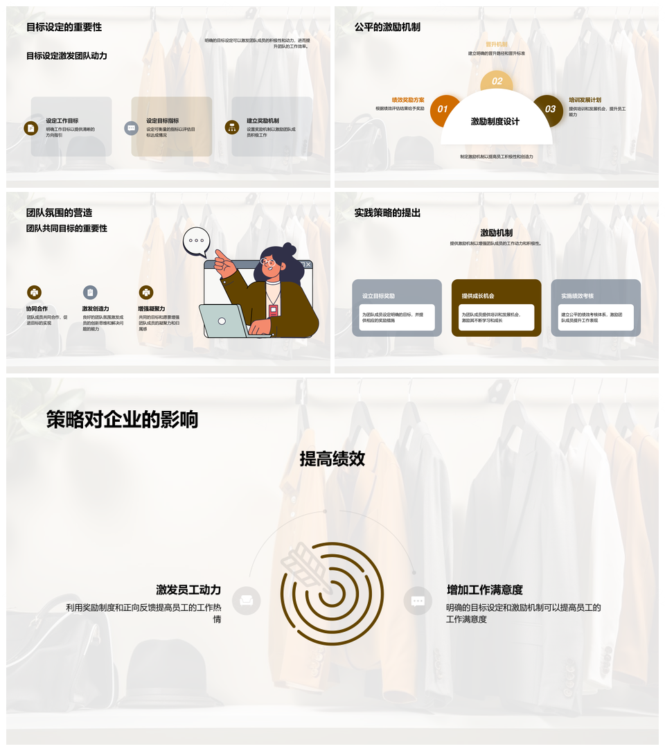 这是一张时尚服装行业管理沟通培训团队激励商务渠道规范PPT模板,包含时尚服装、行业管理、沟通培训、团队激励、商务渠道、规范等主题内容,也可用作时尚服装行业管理、管理沟通培训团队、沟通培训团队激励、培训团队激励商务、团队激励商务渠道、激励商务渠道规范、时尚服装行业、服装行业管理、行业管理沟通、管理沟通培训、沟通培训团队、培训团队激励、团队激励商务、商务渠道规范、渠道规范等PPT场景使用。 风云办公提供的时尚服装行业管理沟通培训团队激励商务渠道规范PPT模板,下载格式为pptx,一共33页,作品中文字及图均可以修改和编辑,图片更改请在作品中右键图片并更换,文字修改请直接点击文字进行修改。