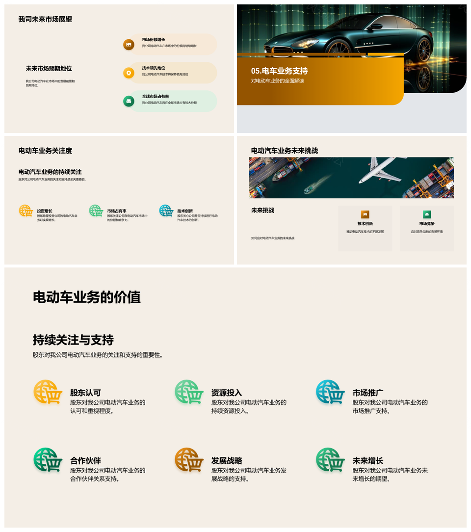 这是一张我公司电动车技术优势驱动业务增长战略PPT模板,包含公司、电动车、技术、优势、驱动、业务、增长、战略等主题内容,也可用作公司电动车技术优势、电动车技术优势驱动、技术优势驱动业务、优势驱动业务增长、驱动业务增长战略、公司电动车技术、电动车技术优势、技术优势驱动、优势驱动业务、驱动业务增长、业务增长战略、公司电动车、驱动业务、业务增长、增长战略等PPT场景使用。 风云办公提供的我公司电动车技术优势驱动业务增长战略PPT模板,下载格式为pptx,一共23页,作品中文字及图均可以修改和编辑,图片更改请在作品中右键图片并更换,文字修改请直接点击文字进行修改。