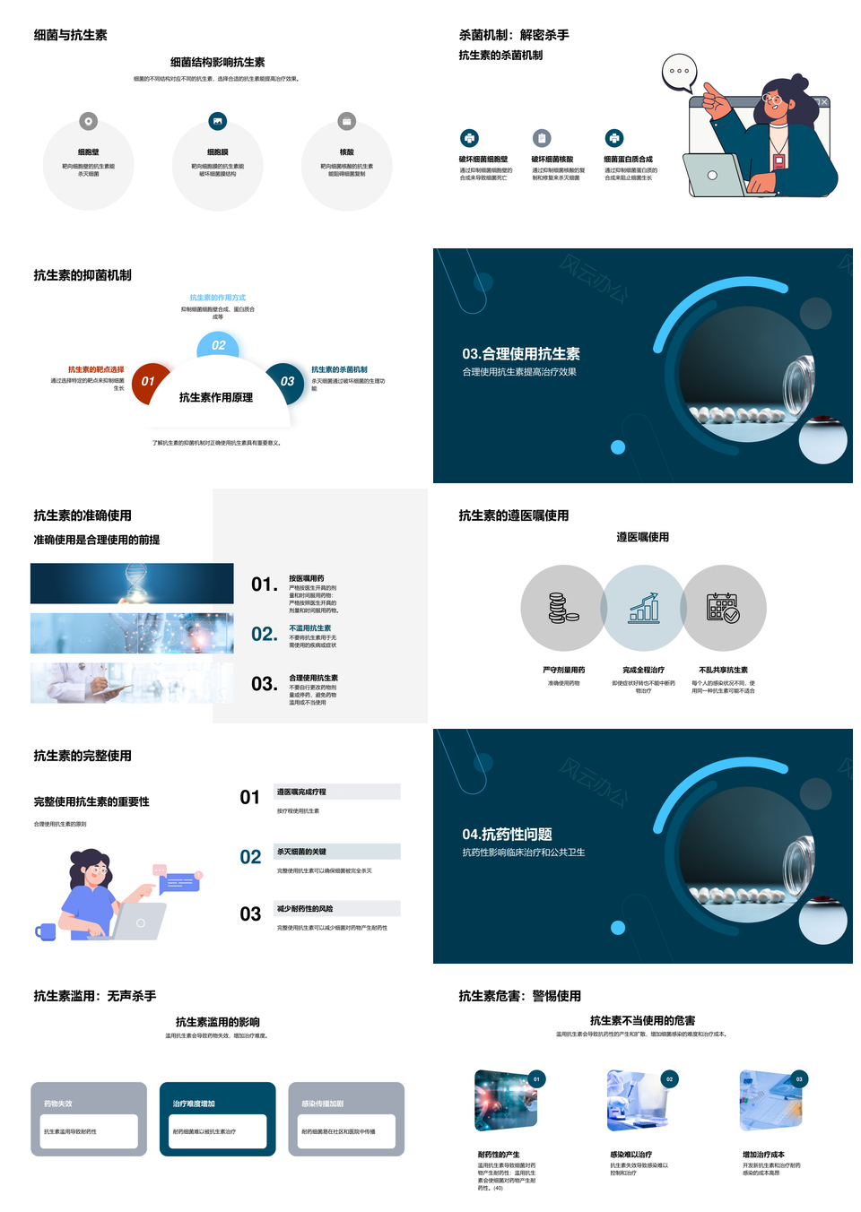 风云办公提供的抗生素双刃合理使用抗药性药师教师PPT模板,下载格式为pptx,一共23页,作品中文字及图均可以修改和编辑,图片更改请在作品中右键图片并更换,文字修改请直接点击文字进行修改。