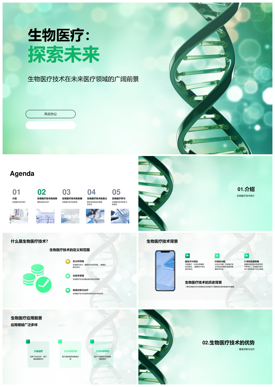 医学生物技术基因编辑干细胞精准医疗应用发展PPT模板
