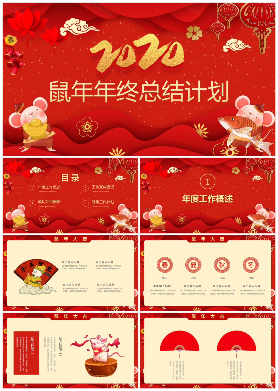红色大气鼠年年终总结计划PPT模板