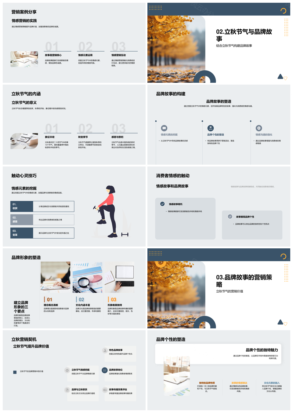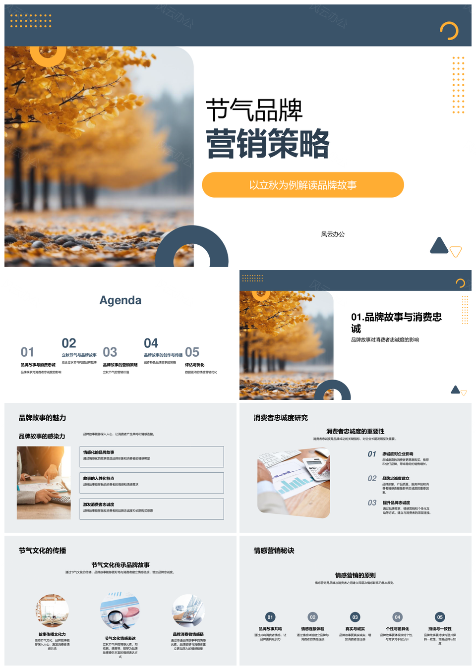 风云办公提供的立秋品牌故事情感营销提升忠诚价值PPT模板,下载格式为pptx,一共33页,作品中文字及图均可以修改和编辑,图片更改请在作品中右键图片并更换,文字修改请直接点击文字进行修改。