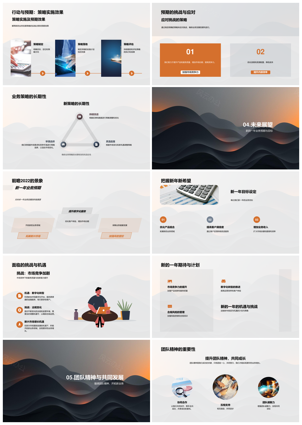 2025团队年终总结挑战机遇发展市场新业务战略规划增效增员PPT模板