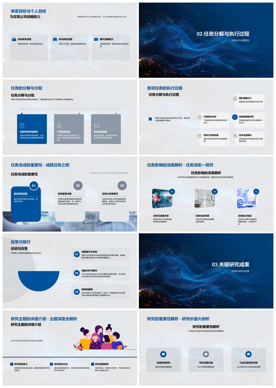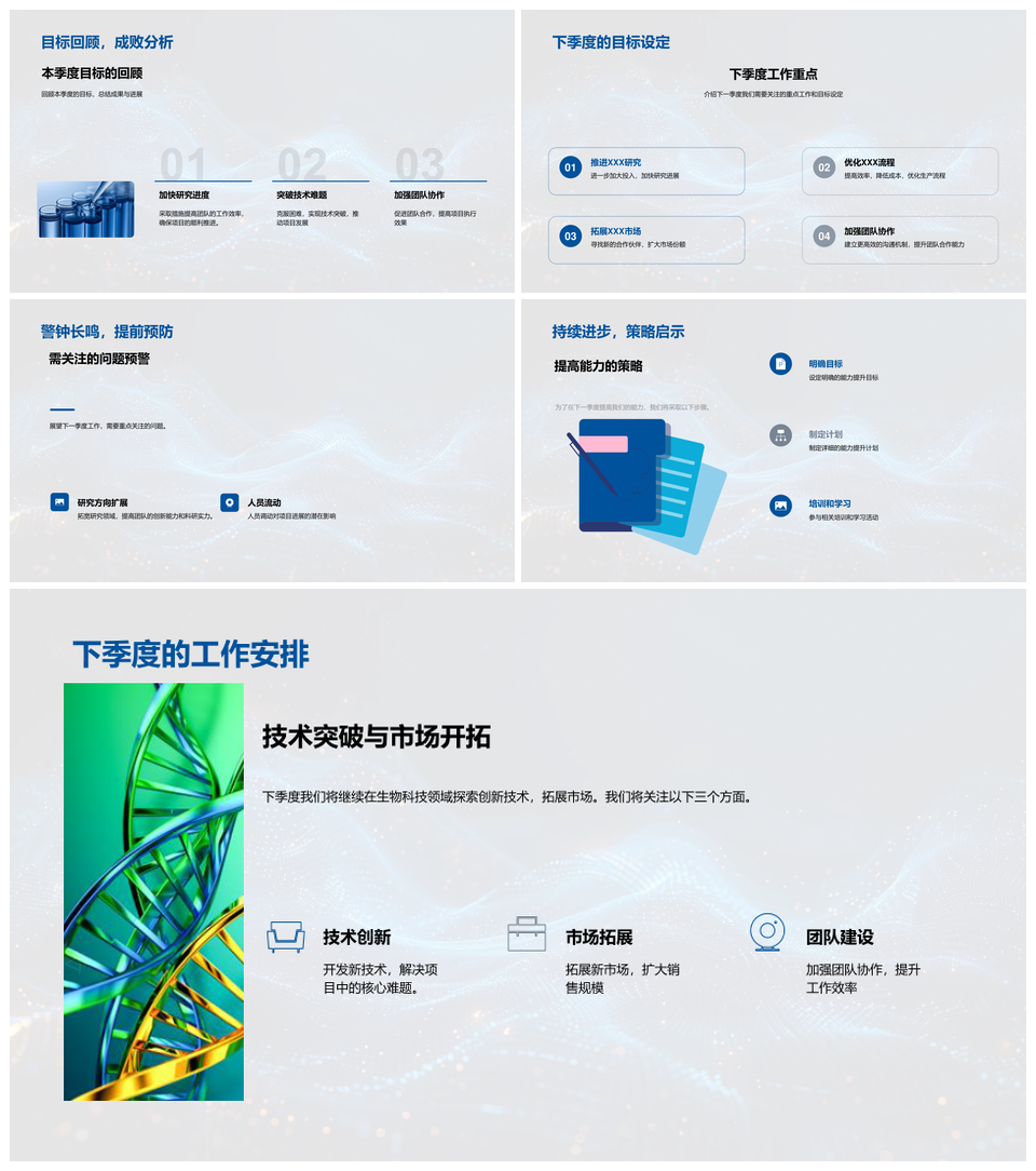 生物科技研发团队季度目标分解执行成果问题解决汇报PPT模板推荐