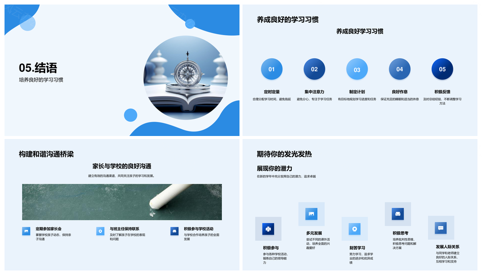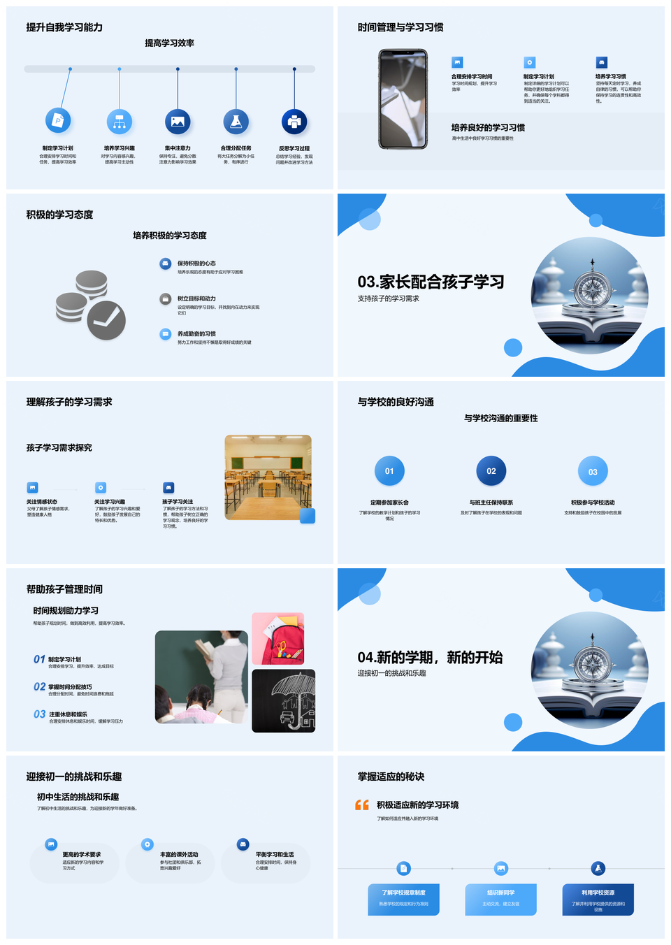 初一新起点学习挑战适应策略启书篇教育理念PPT模板