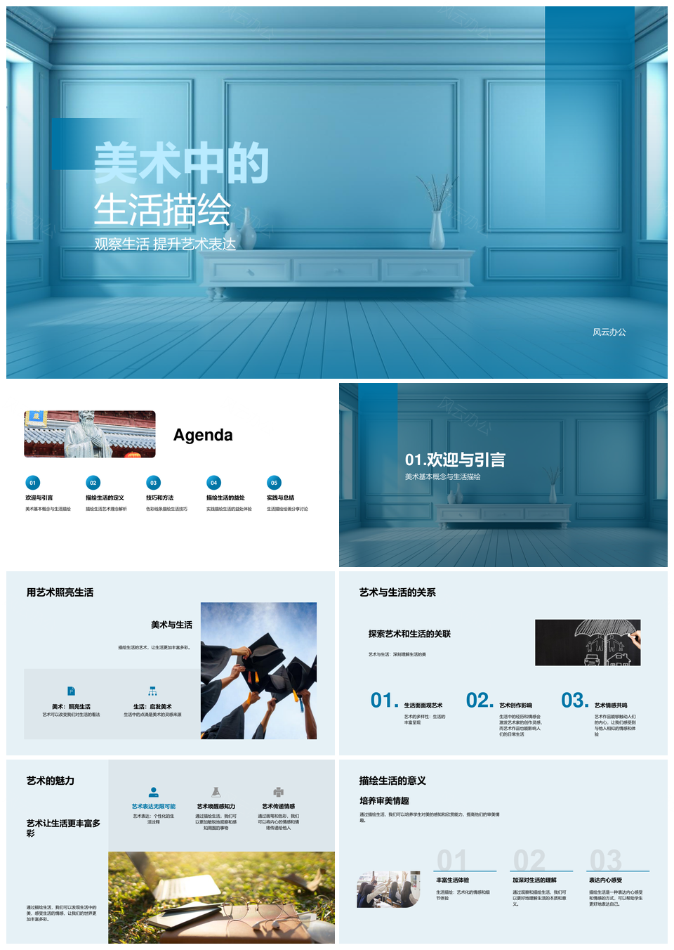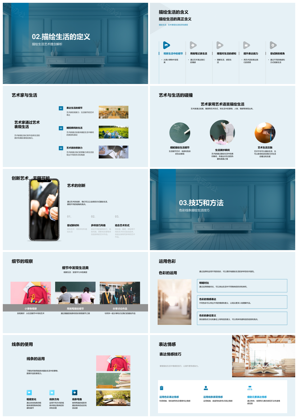 风云办公提供的画笔展现生活艺术观察与表达PPT模板,下载格式为pptx,一共28页,作品中文字及图均可以修改和编辑,图片更改请在作品中右键图片并更换,文字修改请直接点击文字进行修改。