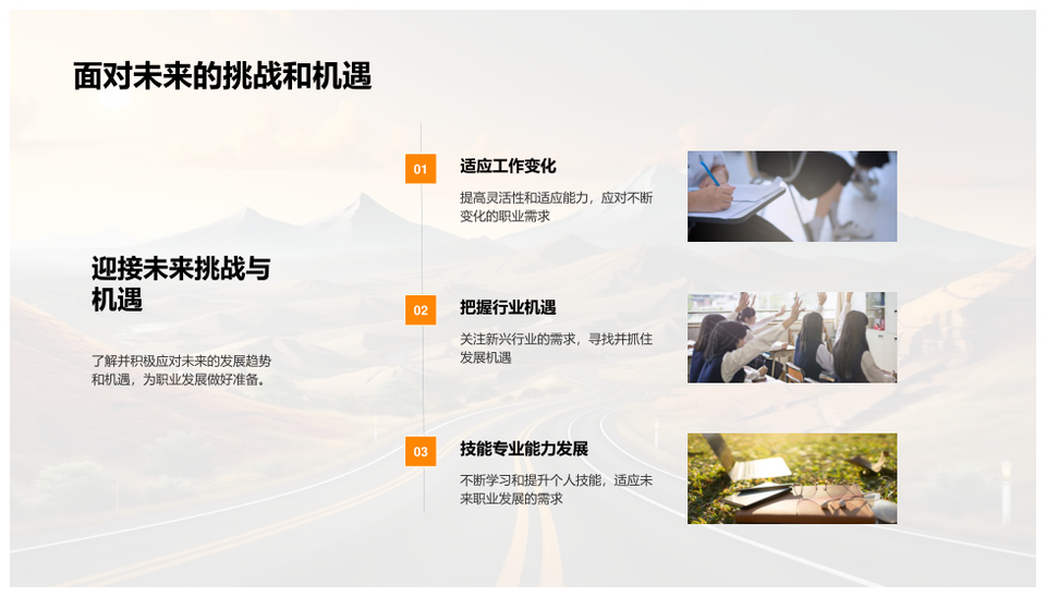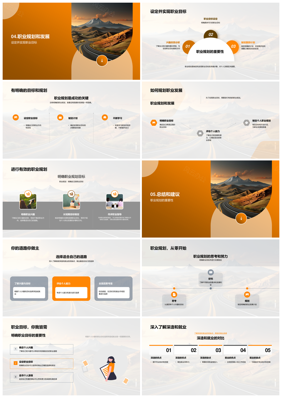 风云办公提供的毕业典礼职业选择规划与发展路径PPT模板,下载格式为pptx,一共29页,作品中文字及图均可以修改和编辑,图片更改请在作品中右键图片并更换,文字修改请直接点击文字进行修改。