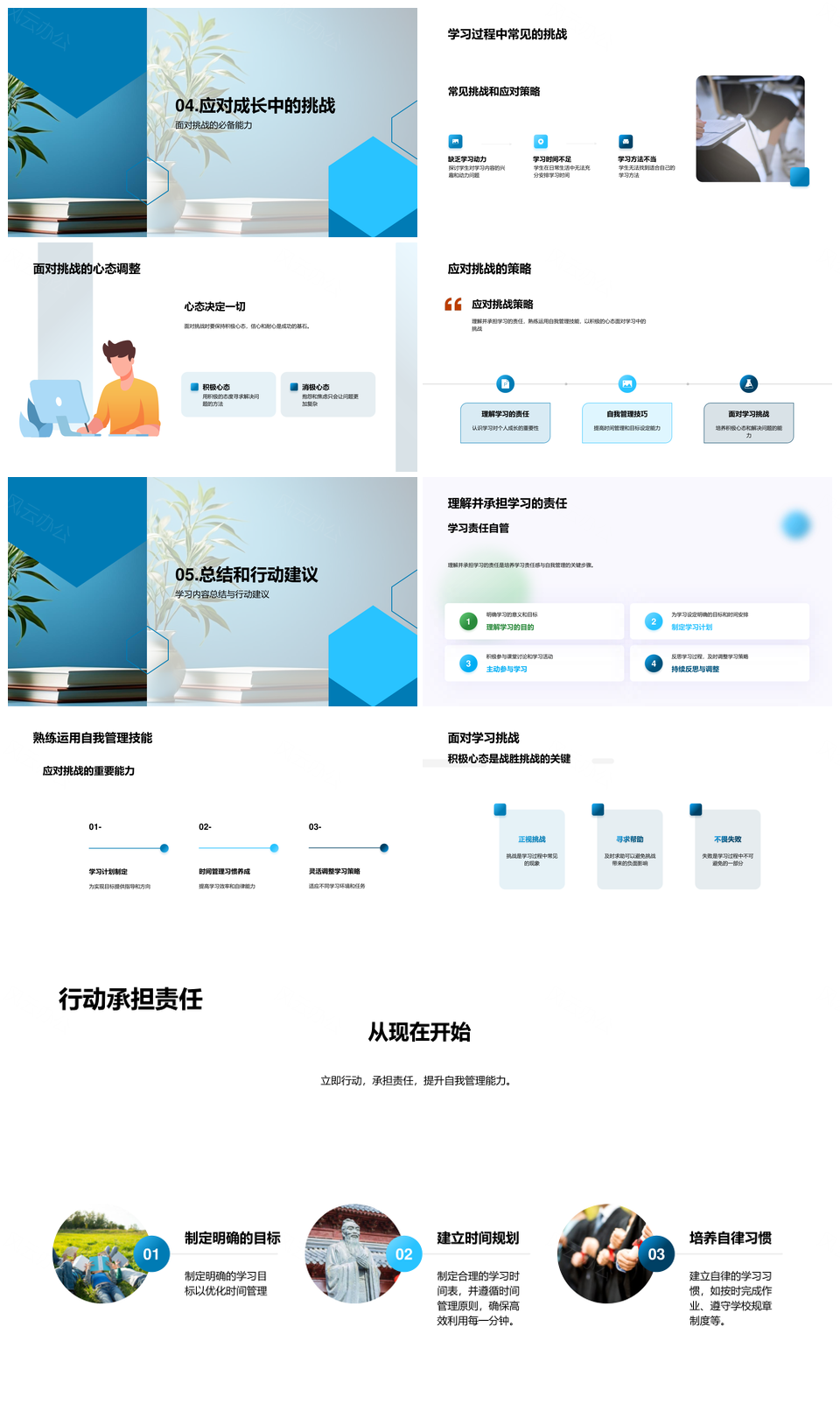 风云办公提供的班会担当成长自我管理书香路PPT模板,下载格式为pptx,一共27页,作品中文字及图均可以修改和编辑,图片更改请在作品中右键图片并更换,文字修改请直接点击文字进行修改。