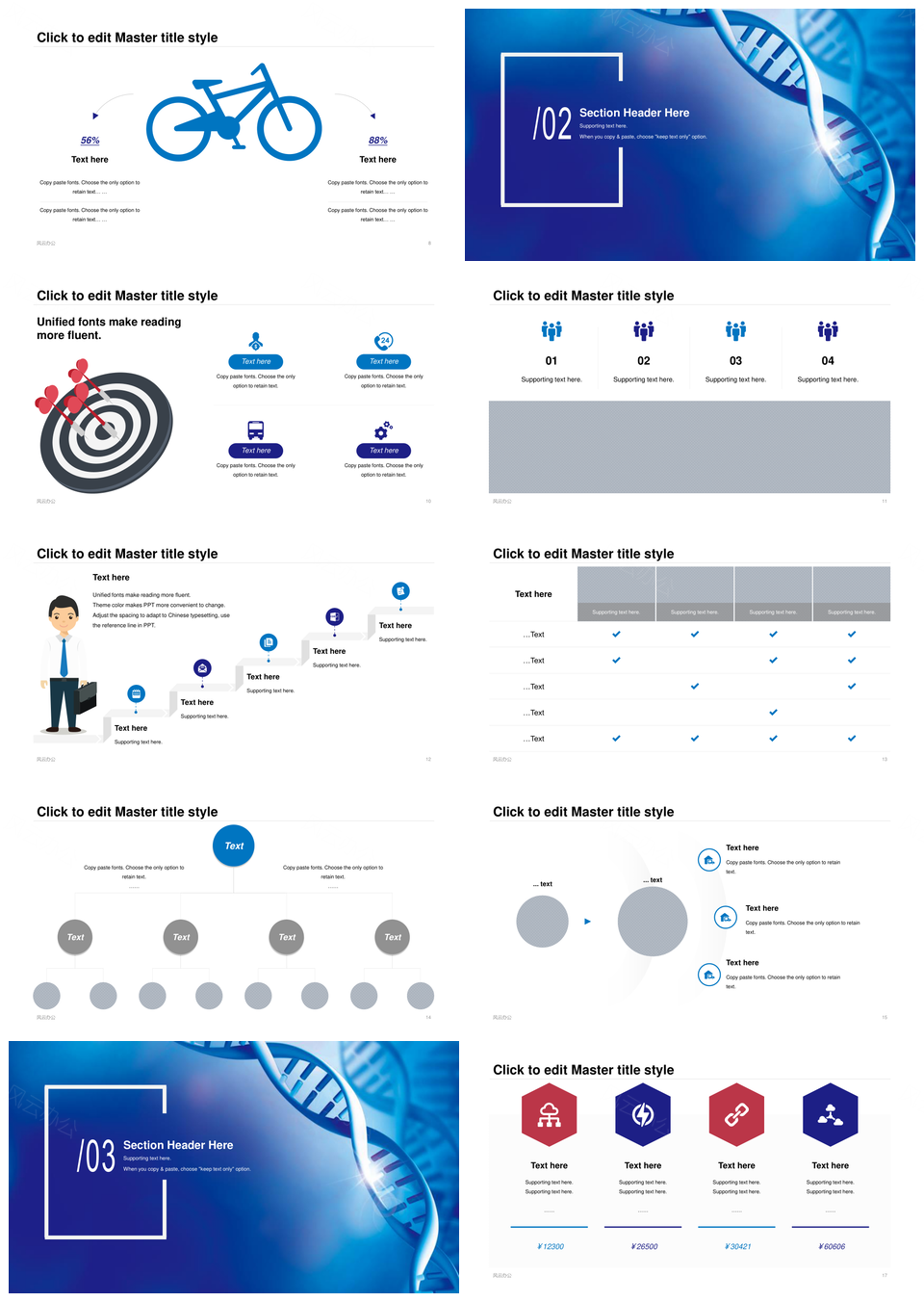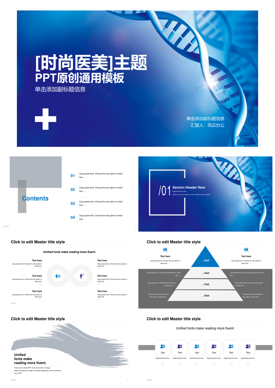 风云办公提供的蓝色医疗基因DNA主题PPT模板,下载格式为pptx,一共31页,作品中文字及图均可以修改和编辑,图片更改请在作品中右键图片并更换,文字修改请直接点击文字进行修改。