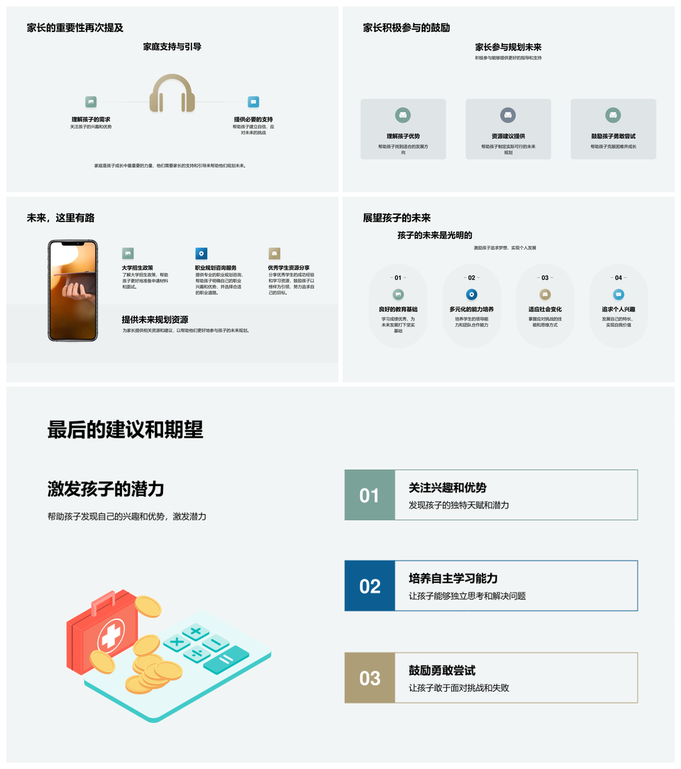 风云办公提供的家长引领孩子兴趣优势规划发展蓝图PPT模板,下载格式为pptx,一共33页,作品中文字及图均可以修改和编辑,图片更改请在作品中右键图片并更换,文字修改请直接点击文字进行修改。