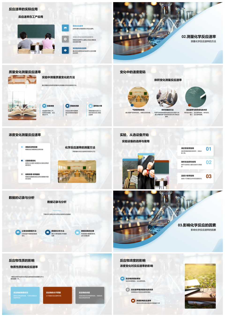 这是一张掌握化学反应速率浓度温度催化剂控制实验PPT模板,包含化学反应速率、浓度、温度、催化剂、控制、实验等主题内容,也可用作掌握化学反应反应速率浓度温度、化学反应反应速率浓度温度催化剂、反应速率浓度温度催化剂控制、浓度温度催化剂控制实验、掌握化学反应反应速率浓度、化学反应反应速率浓度温度催化剂、掌握反应速率浓度温度催化剂、反应速率浓度温度催化剂控制、掌握浓度温度催化剂控制、温度催化剂控制实验、掌握化学反应反应速率、化学反应反应速率浓度温度、掌握化学反应浓度温度、反应速率浓度温度、浓度温度催化剂控制等PPT场景使用。 风云办公提供的掌握化学反应速率浓度温度催化剂控制实验PPT模板,下载格式为pptx,一共33页,作品中文字及图均可以修改和编辑,图片更改请在作品中右键图片并更换,文字修改请直接点击文字进行修改。