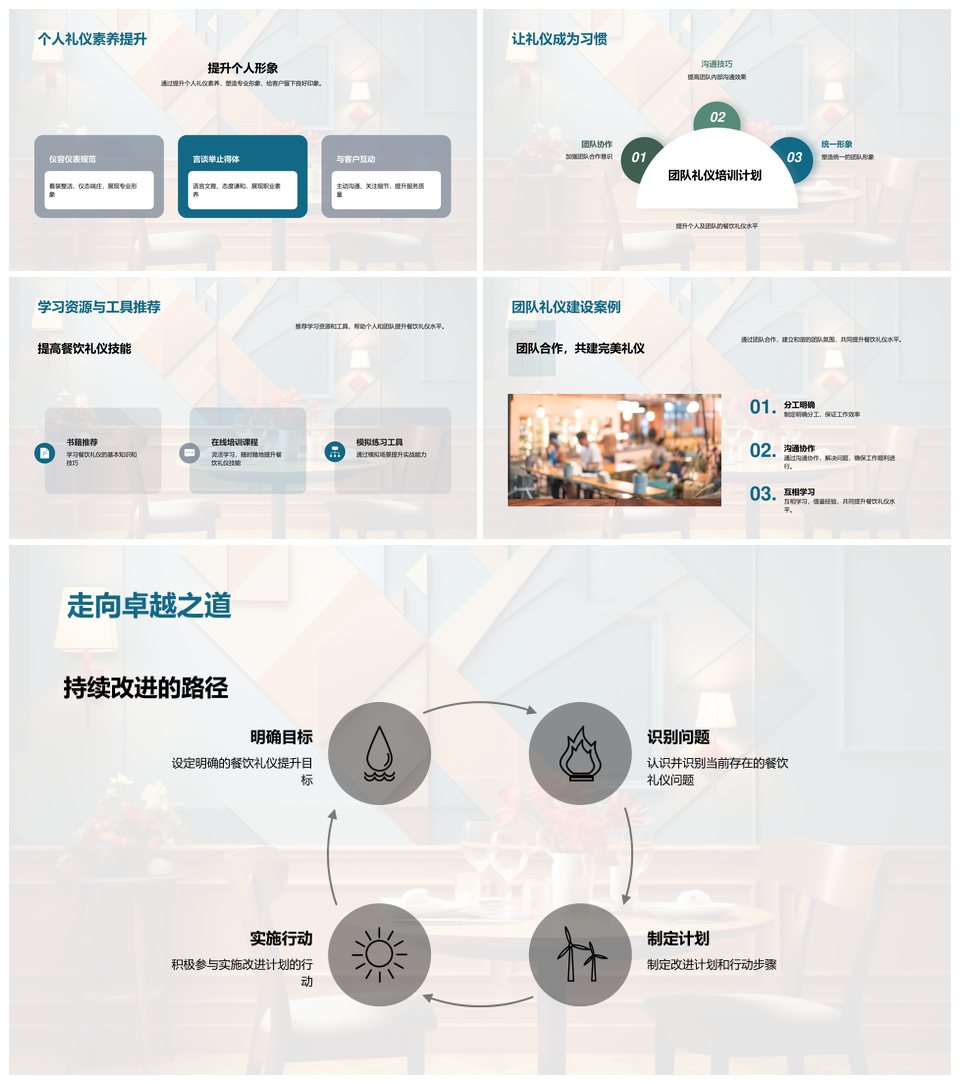 这是一张餐饮礼仪培训提升服务质量和商务形象PPT模板,包含餐饮礼仪、培训、提升、服务质量、商务形象等主题内容,也可用作餐饮礼仪培训提升服务质量、餐饮礼仪培训商务形象、礼仪培训提升服务质量商务形象、餐饮礼仪服务质量商务形象、培训提升服务质量商务形象、餐饮礼仪培训提升、礼仪培训提升商务形象、提升服务质量商务形象、餐饮礼仪服务质量、培训服务质量商务形象、礼仪培训服务质量、餐饮服务质量商务形象、餐饮礼仪商务形象、餐饮培训服务质量、礼仪提升服务质量等PPT场景使用。